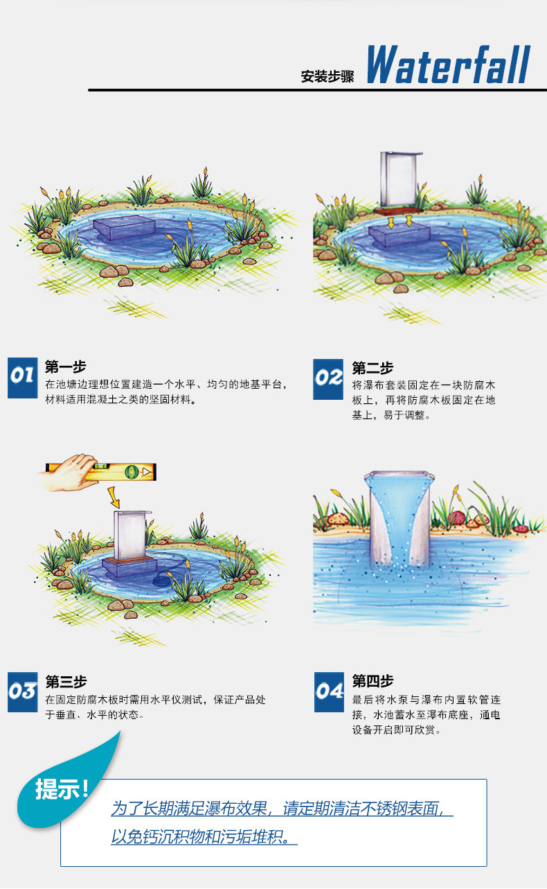 - Водопад водопада из нержавеющей стали 90 см (за исключением насоса, устья водопада Shan)