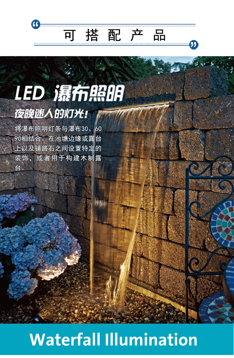 - Водопад из нержавеющей стали водопад 60 см+Aquamax Eco 14000 Водяной насос+60 набор ленты фонаря