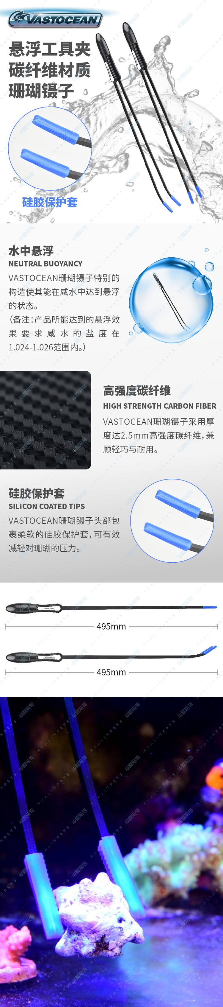 VASTOCEAN Морская вода -коралловые пинцеты с высоким содержанием углеродного волокна подвешенное коралловый зажидок морской цилиндр зажимной прямой изогнутый зажим