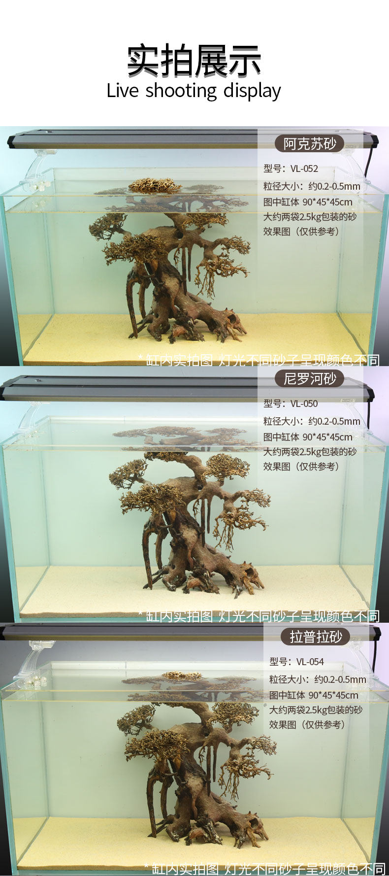 Veveray Fish Tank День Песчанный ландшафтный дизайн песка. Без песка промывка, макияж песчаная вода трава дождевой лес дождевой лес, три озера, цихлиды, рыбный песок