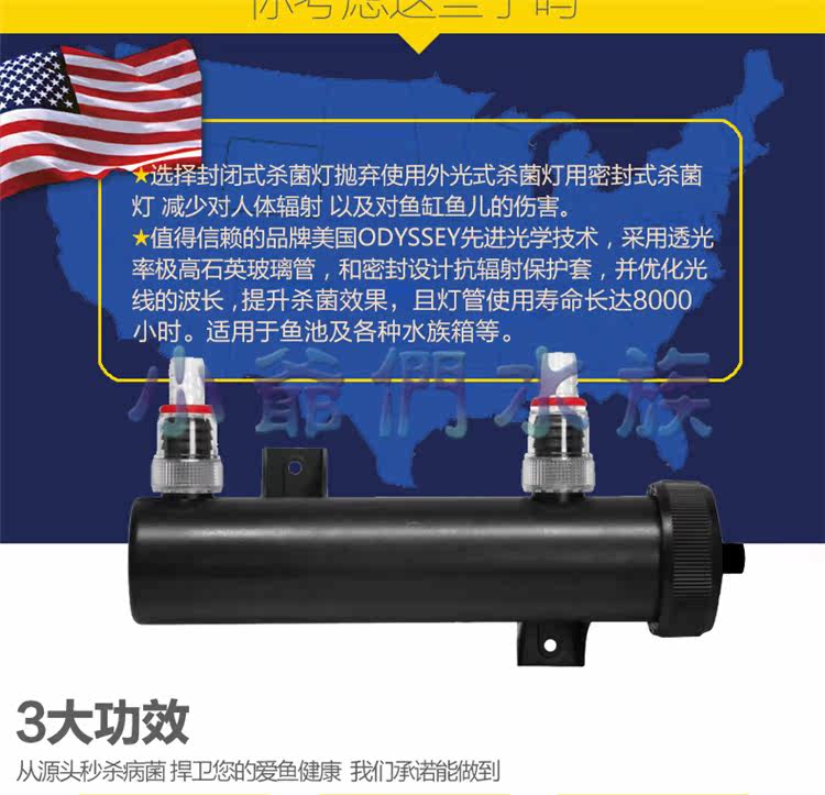 American Odyssea, УФ-9W УФ-стерилизационная лампаТрубка с высокой эффективностью ультрафиолетовой стерилизации может сильно убивать различные вредные бактерии. Она оказывает очевидное влияние на паразитов, что может очистить качество воды и способствовать здоровому росту животных и растений.