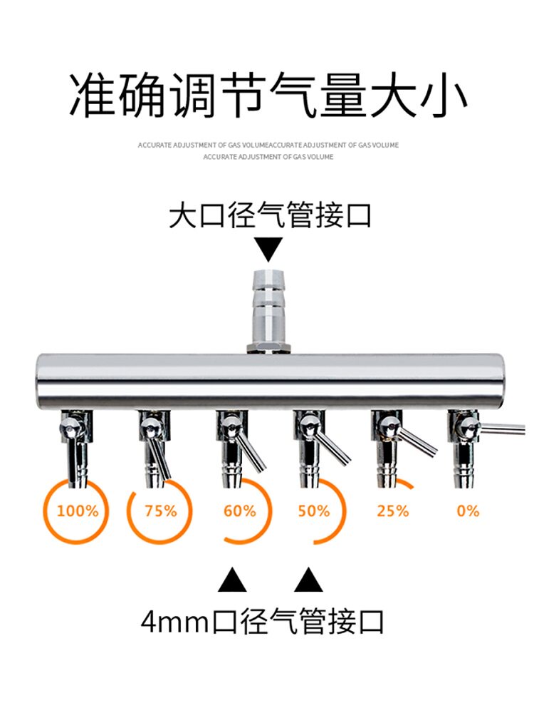 Рыба -аквариум кислородная трубка из нержавеющей стали Стюлер -газообразной объемной газ Клапан Аквариум кислородного насоса медная никелевое устройство.
