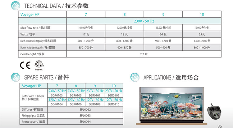 ЭтотVOYAGER HPсерииПроточный насос изысканный и компактный, а скорость потока очень впечатляет. Тонкий волновой насос с одной головкой может достигать производительности 10 500–15 000 л/ч. Он имеет низкое энергопотребление и может обеспечить бесшумную работу. Это очень, очень удивительно. Это не только улучшает эстетику баллона, но и обеспечивает повседневные нужды. Я ставлю большой палец вверх. Максимальная толщина прижима стекла – 20 мм, этого хватит всем;