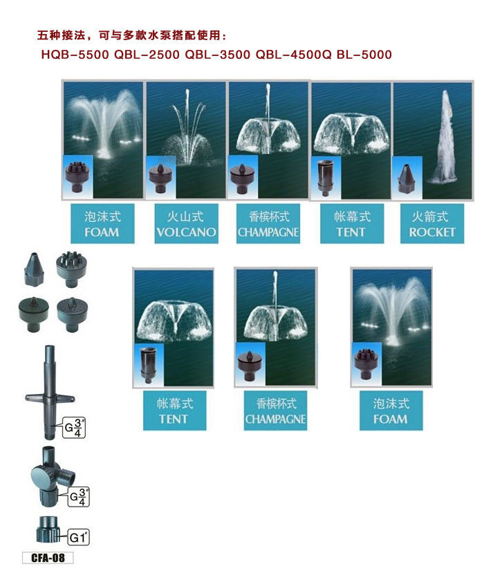 Фонтайн головка фонтана спрей спрей для пруда пруд поддельный фонтан насос аксессуары насосы аксессуары CFA-01
