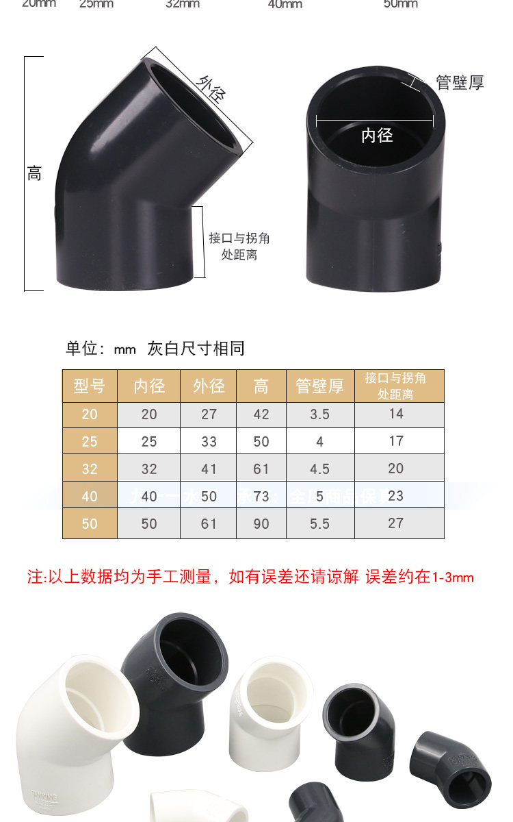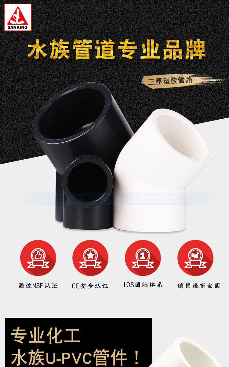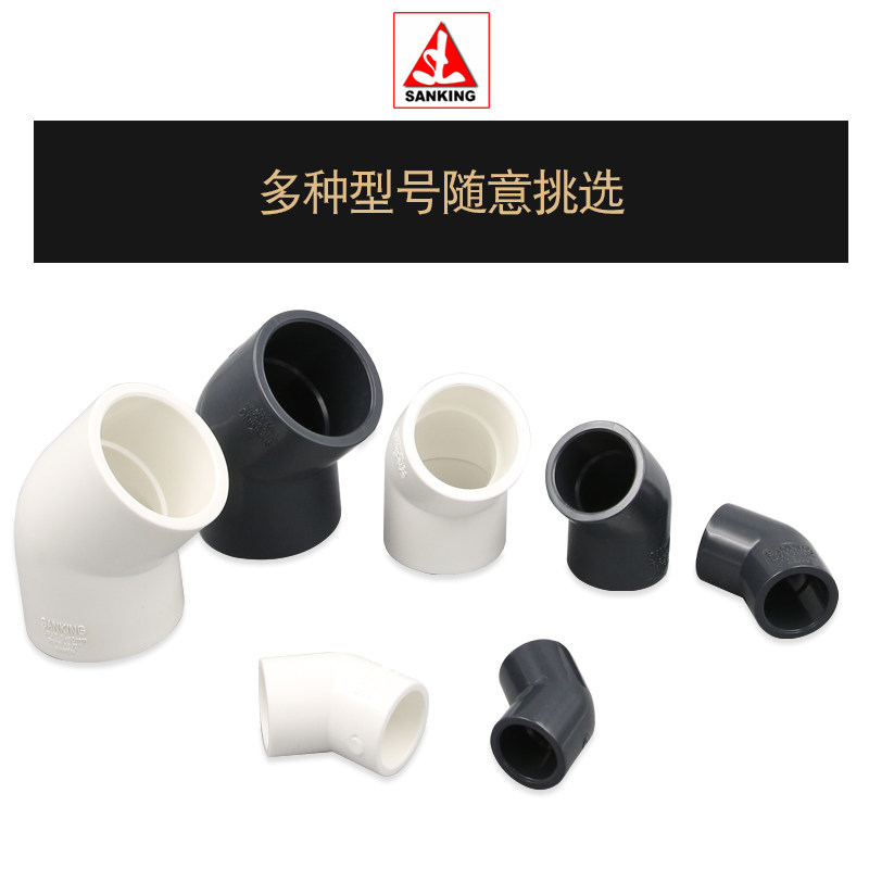 Тайвань Саншу Аквариум Рыба Рыба Трубы трубы, посвященные 45 градусам локтевого белого черного черного черного пластика 45 ° Национальный стандартный локоть
