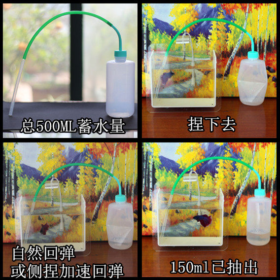 Большая вода -поглощающая бутылка, по сравнению с сифоном, адаптируется к более ограниченной настольной среде.Общий трубопровод составляет 3 мм эффективный диаметр потока.Эластичная бутылка составляет 500 мл, шланг труб составляет около 30 см, а твердая труба составляет около 15 см.Подходит для той же самолетной работы, я сейчас использую этот аквариум.Тем не менее, напоминает, что поток воды действительно мал.