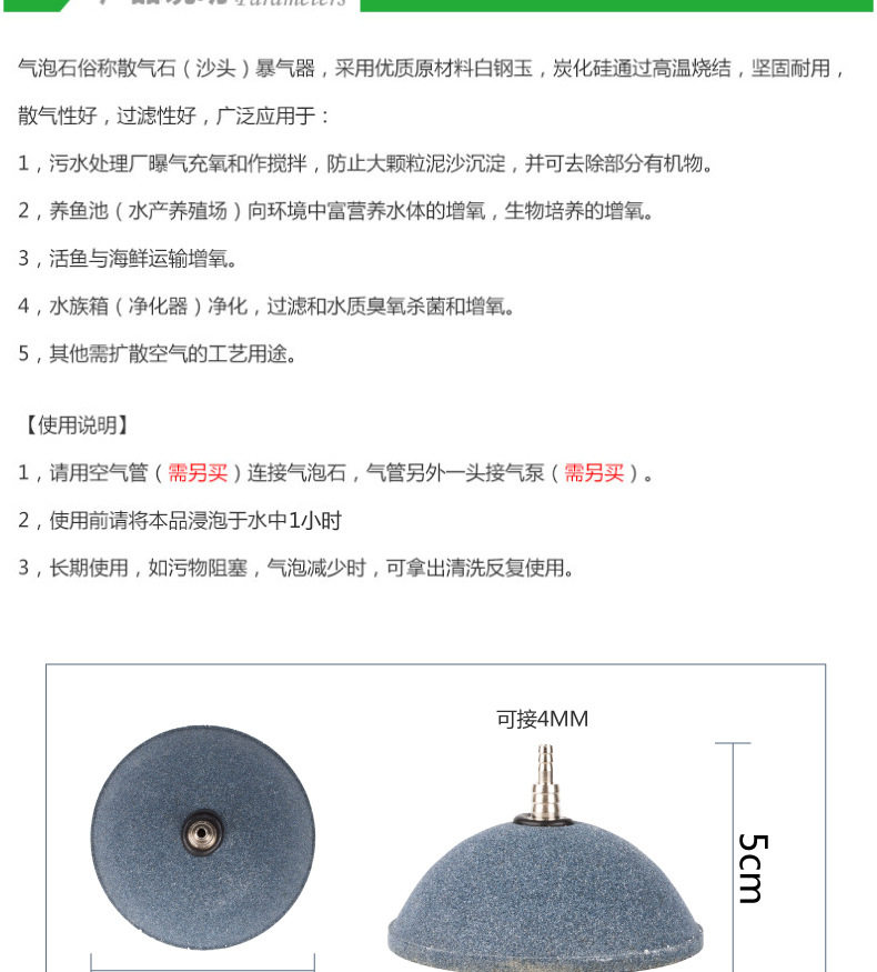 Торговая бак -пузырьки для кислородного насоса, кислород, хлеб -камень песчаная головка газовая пластина каменная грибная газовая торт увеличивает кислород