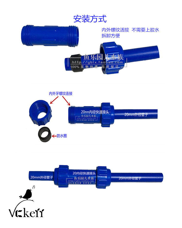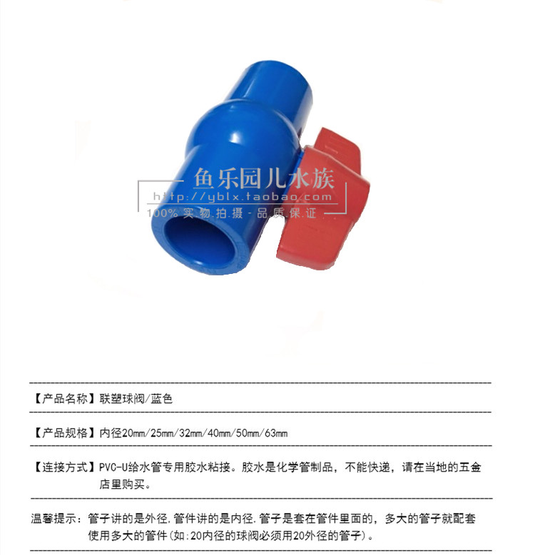 Vckerr аквариум -аквариум -танк фильтр из аксессуаров для водопроводной трубы Пластиковая синяя труба двойной живой шаровой клапан клапан перехвата