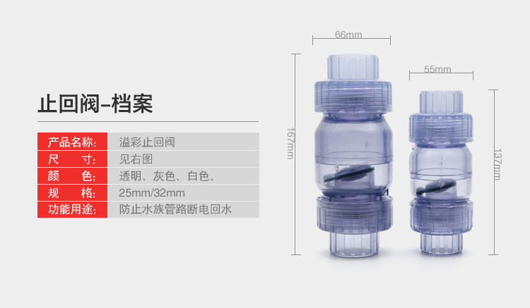 溢彩 Рыба -резервуар Стоп клапан однонаправленный клапан Пластиковый обратный клапан Прозрачный UPVC Поверно, обратный клапан против перевернутого потока