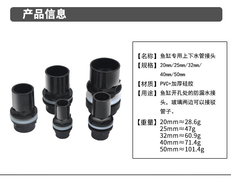 Рыба -резервуар Верхний и нижняя водопроводная труба детали разъема аквариум аквариум на выходе из аквариума Пластиковые Внешнее резьбое силиконовое уплотнение Утолщенное роторное соединение