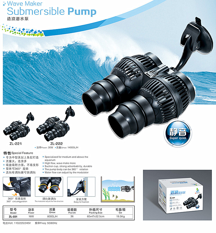 金利佳 ZL-101 Silent Fish Tank Tank Waver Sump Aquarium Surfing Pump Double-Head Plow Насос затопленной волновой насос