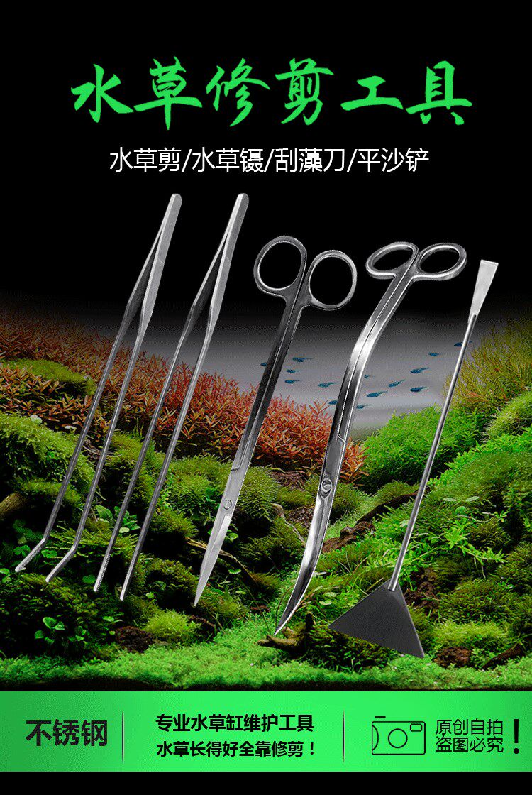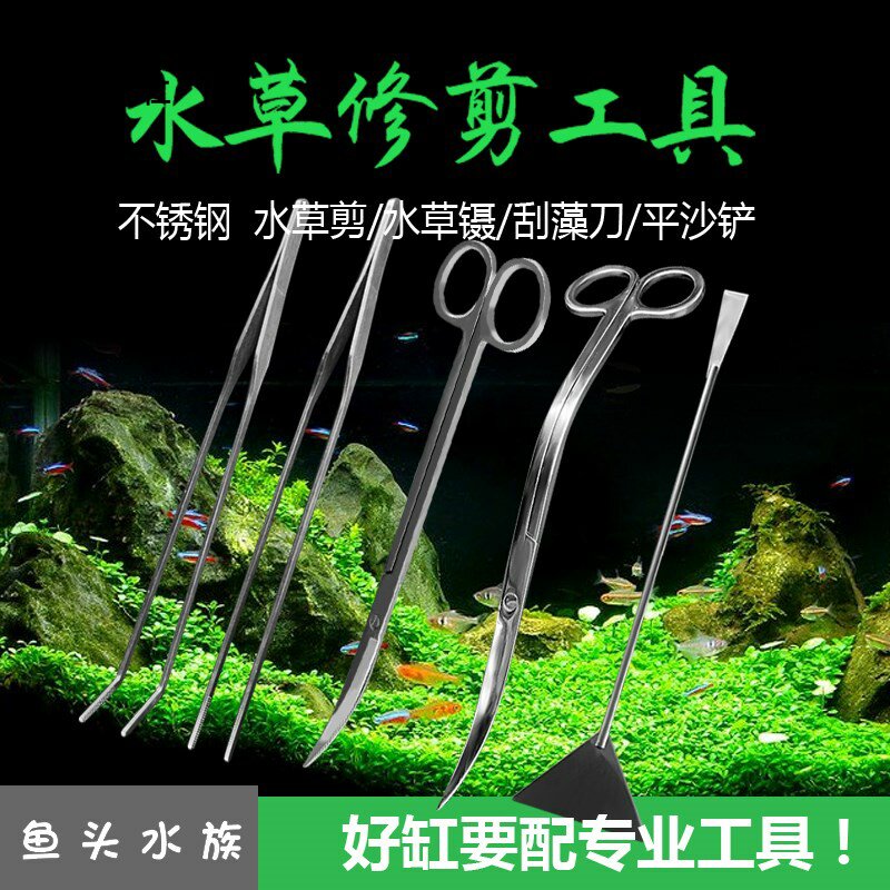 Водные растения из нержавеющей стали, длинные волнистые ножницы, декор для аквариума, пинцет, комплект