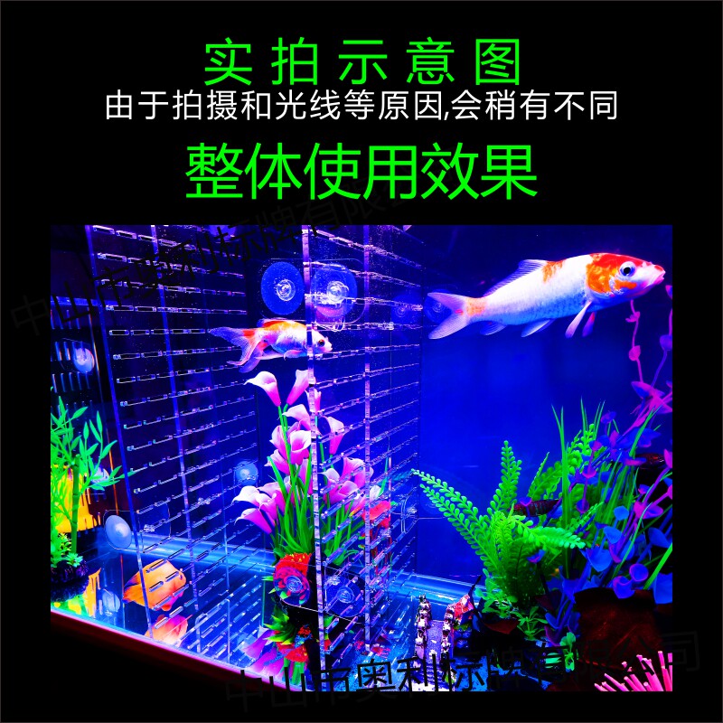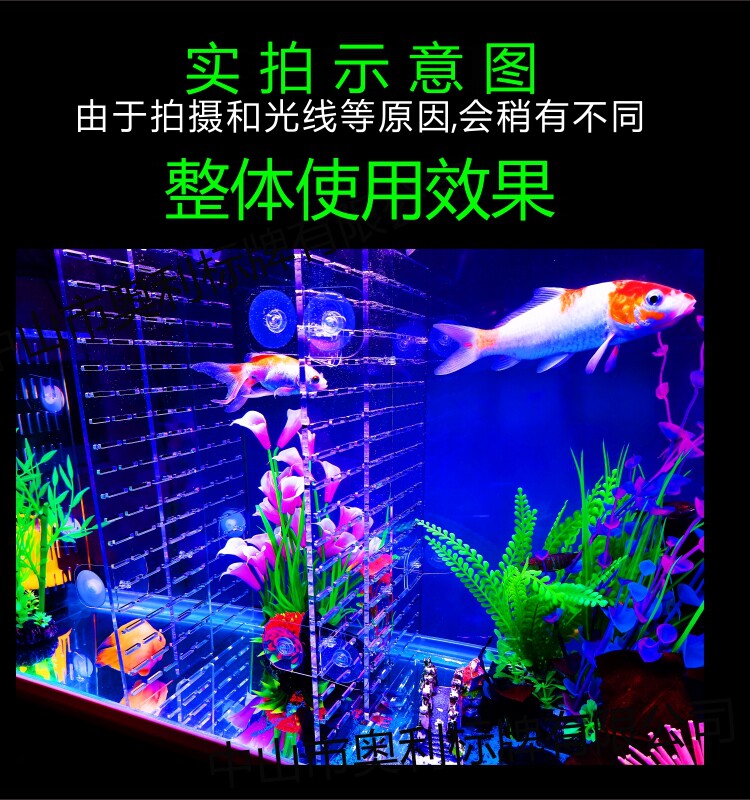 Небольшой высокопрозрачный рыбный бак -сеть, разделенная на многооновый L -образованный прямоугольный заглашенный поперечный заглав