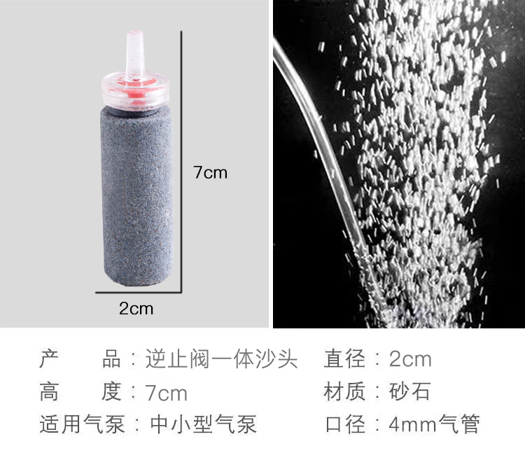Глупок клапана обратного проточного клапана газовый пузырьн каменный каменный аквариум кислородного насоса рыб цилиндр кислородный насос песок из газового встроенного обратного клапана