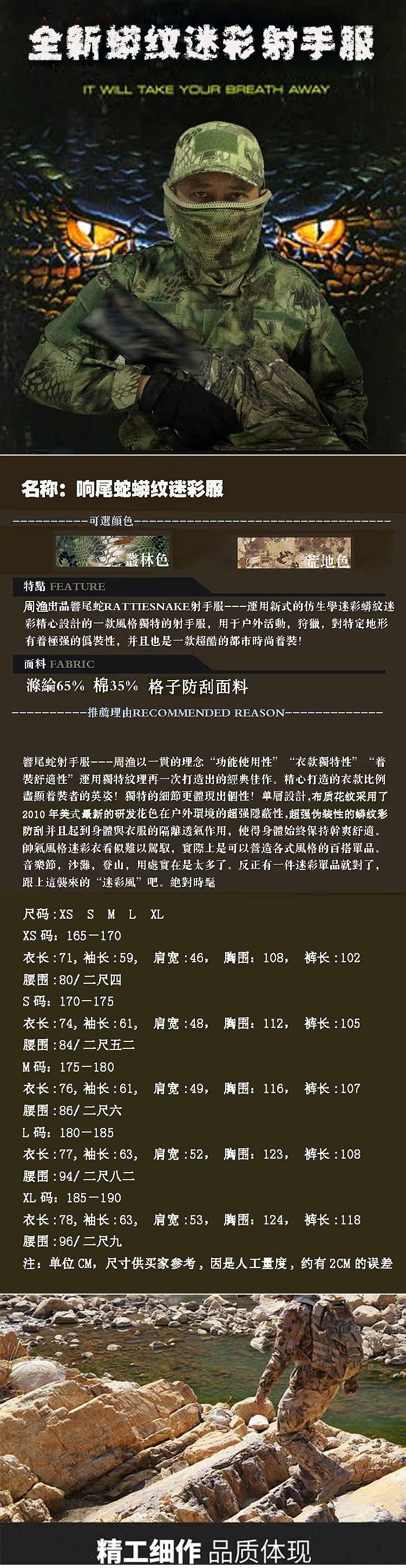 | Цвет: | Цвет джунглей (вверху+брюки), Цвет джунглей (вверху+брюки+шляпа), Цвет пустыни (вверху+брюки), Цвет пустыни (вверху+брюки+шляпа), Цвет джунглей (вверху+брюки+шляпа+сетевая шарф) |