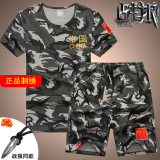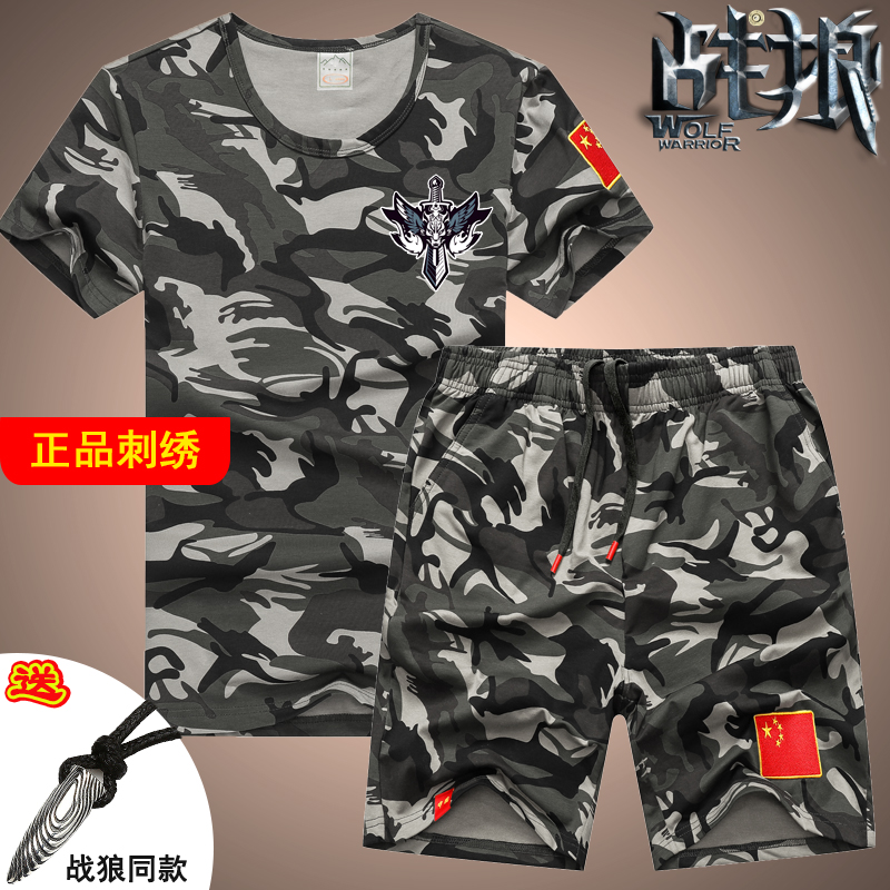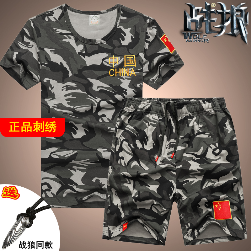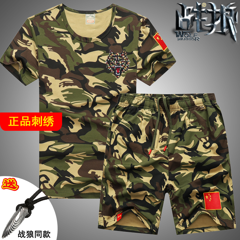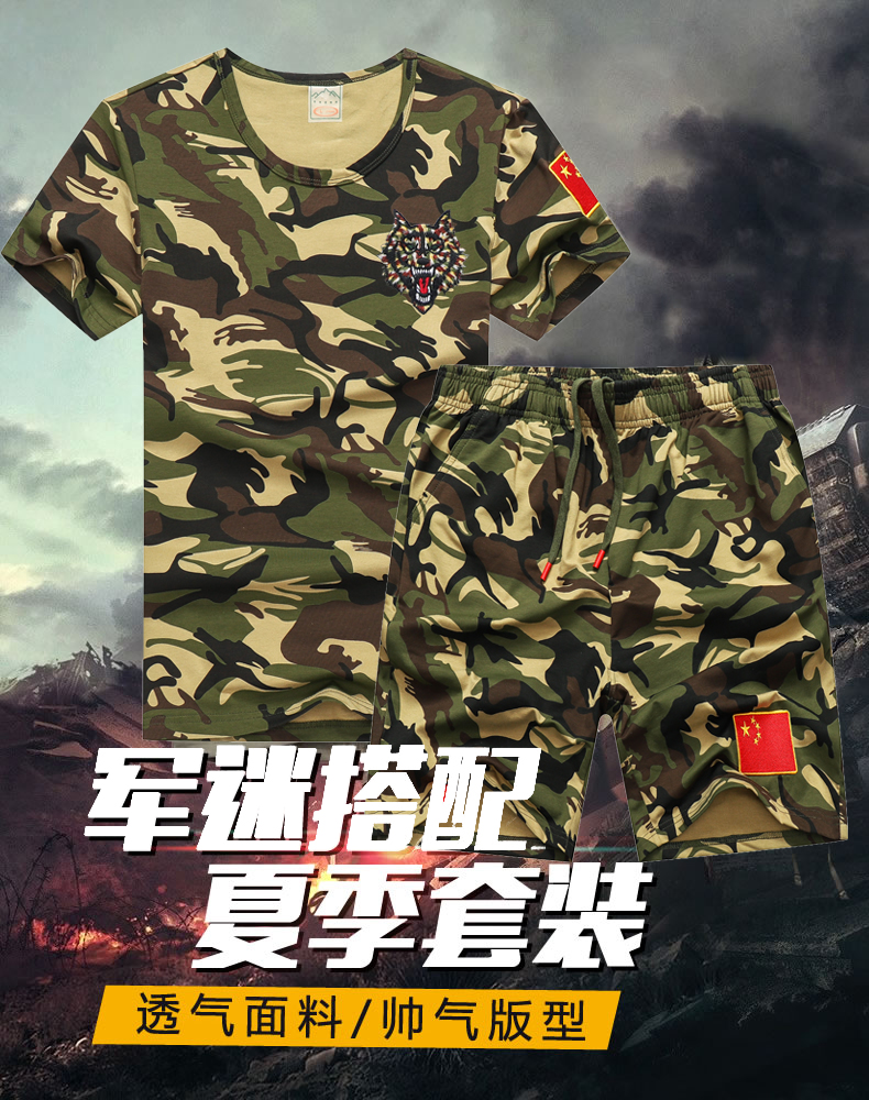 Камуфляжные хлопковые шорты, мужская хлопковая эластичная футболка, летний комплект, короткий рукав
