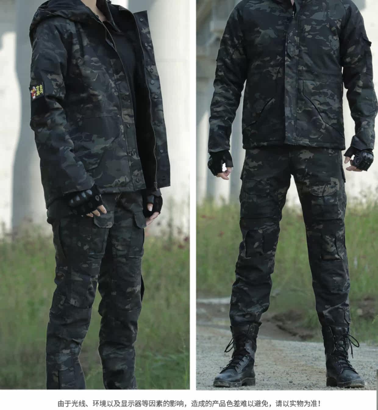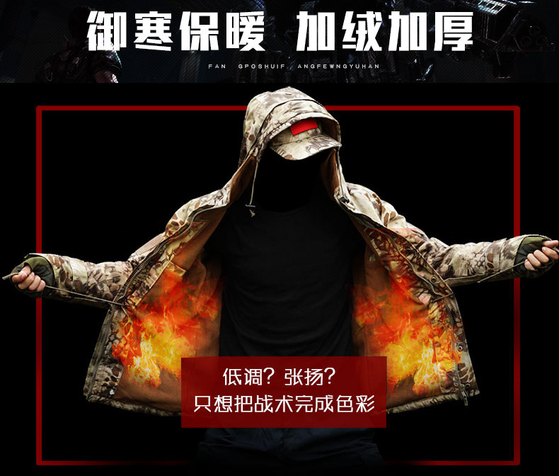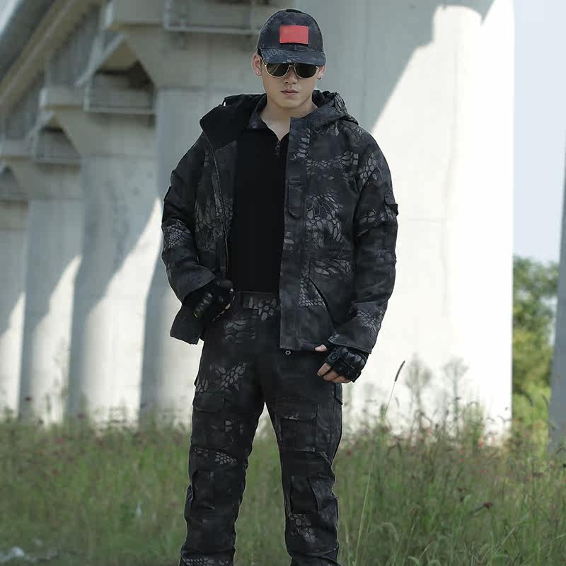 Камуфляжный комплект, демисезонный оригинальный лонгслив, дорожная флисовая черная куртка, увеличенная толщина