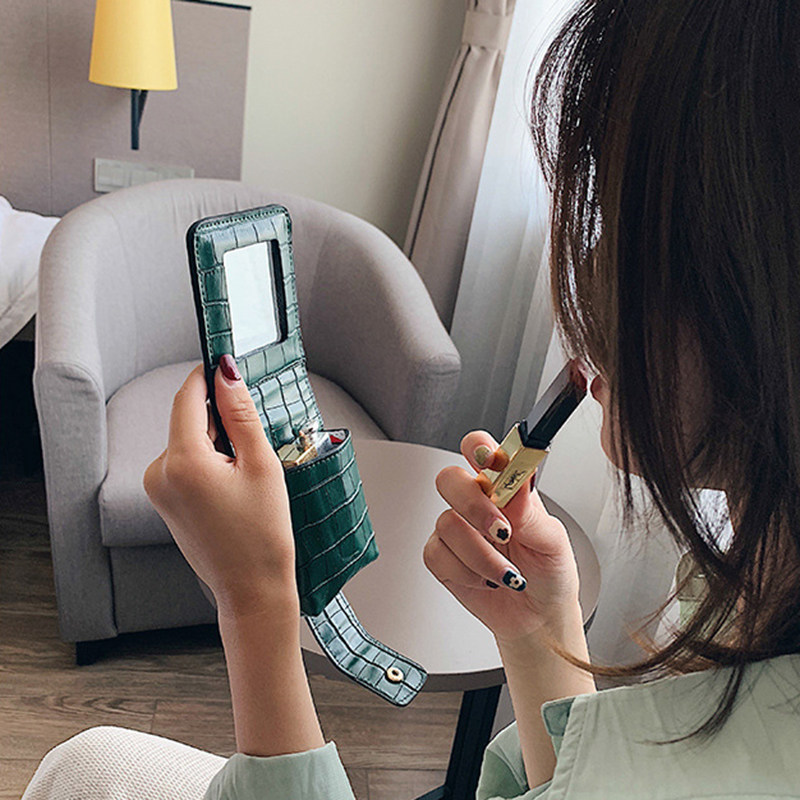 Портативная маленькая система хранения, косметичка, помада, зеркало, крокодиловый принт