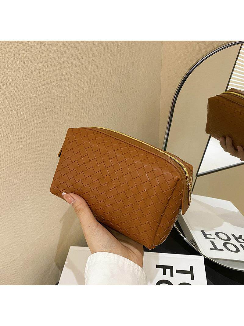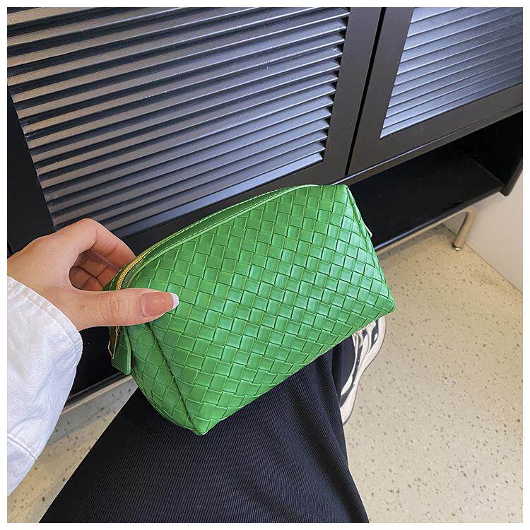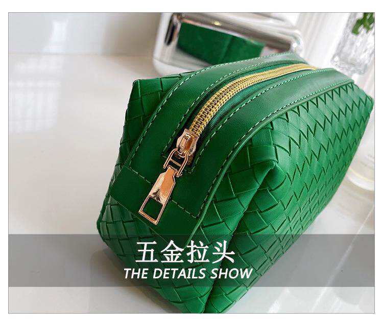 Плетеная зеленая портативная косметичка, маленькая система хранения, лента, изысканный стиль