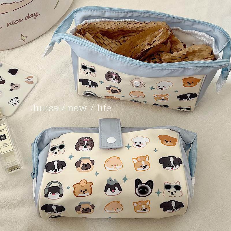 Кремовый вместительный и большой универсальный пенал, косметичка, сумка, канцтовары, система хранения