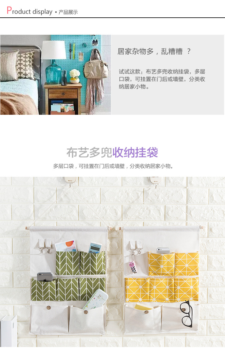Настенная ткань, система хранения, настенный подвесной органайзер для кровати, мобильный телефон, из хлопка и льна