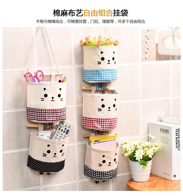 Японская система хранения, подвесной органайзер, сумка для хранения, ткань, коробочка для хранения, из хлопка и льна