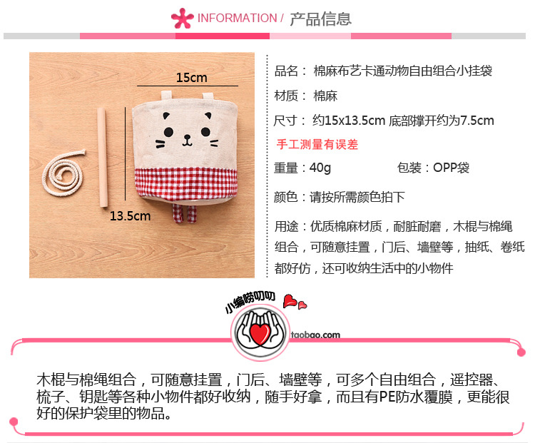 Милая ткань, подвесной органайзер, настенная сумка для хранения, коробочка для хранения