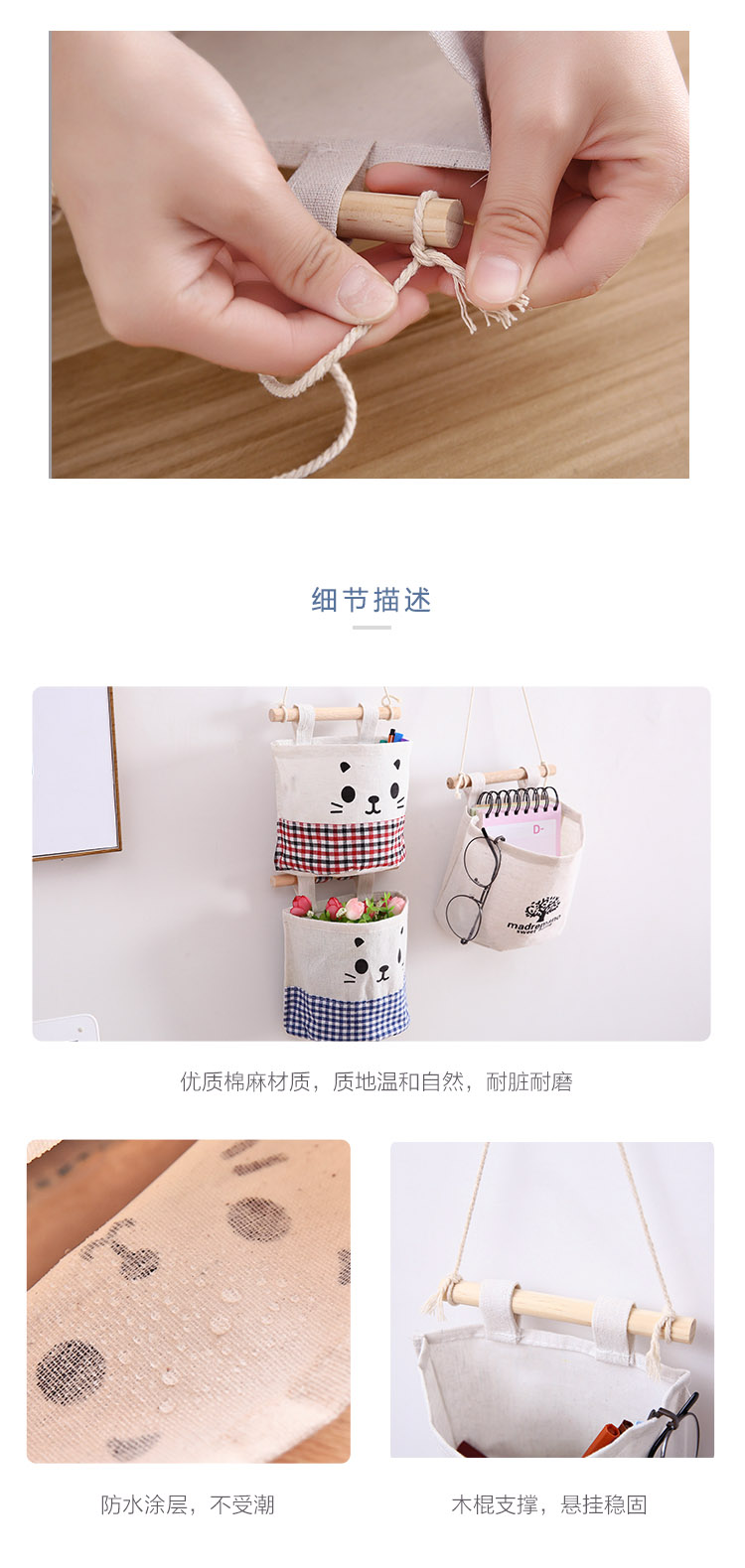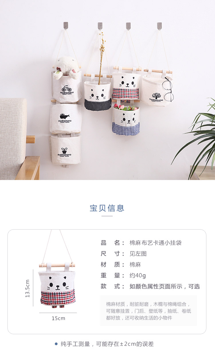 Подвесная многослойная ткань хлопок и конопляная мешка с висящей стены, стеновая дверь стена, настенная дверь, подвесная сумка, артефакт общежития
