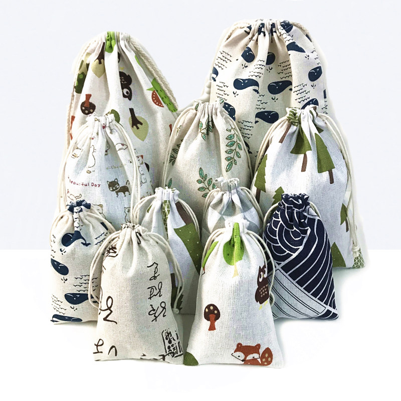 Сумка для хранения для путешествий, тканевый мешок, нижнее белье, система хранения, из хлопка и льна, на шнурках