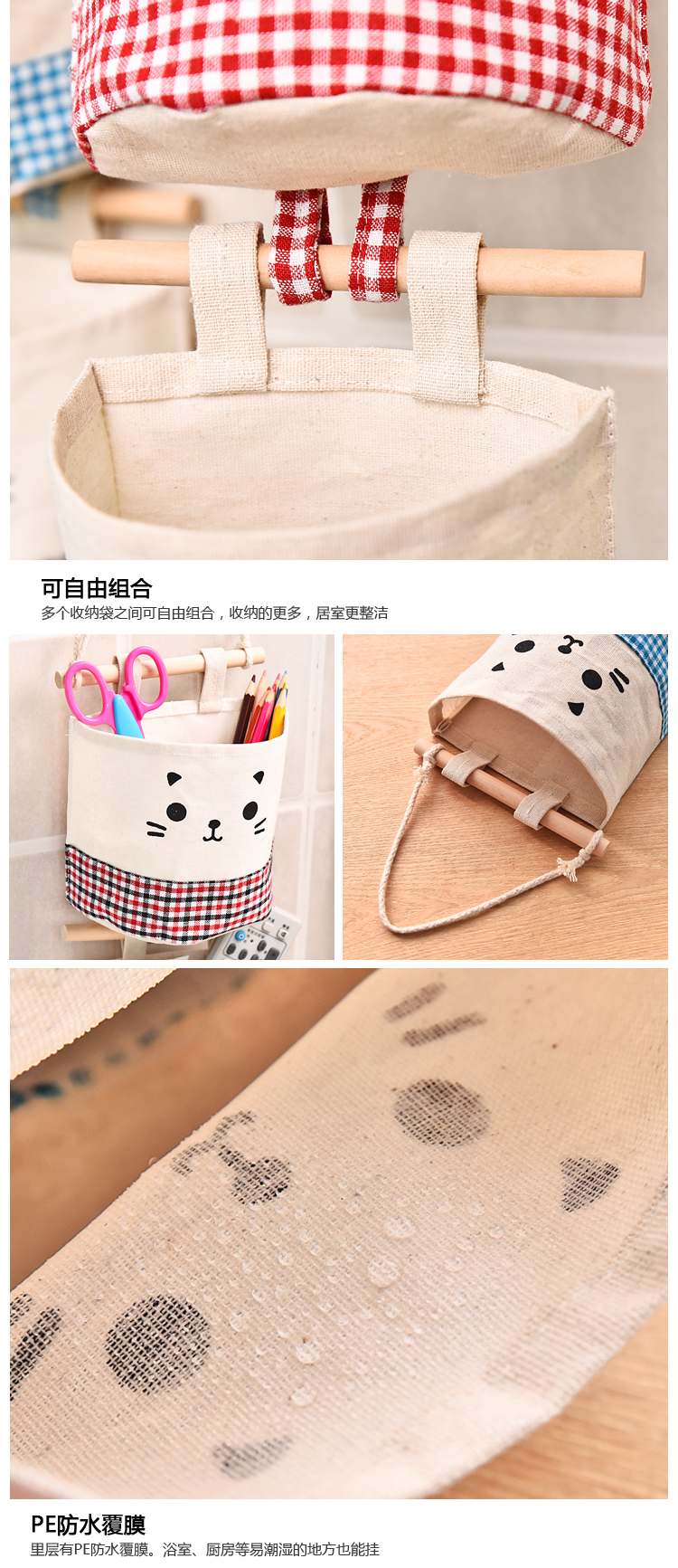 Ткань для домашнего использования, настенная сумка для хранения, подвесной органайзер, коробочка для хранения, из хлопка и льна