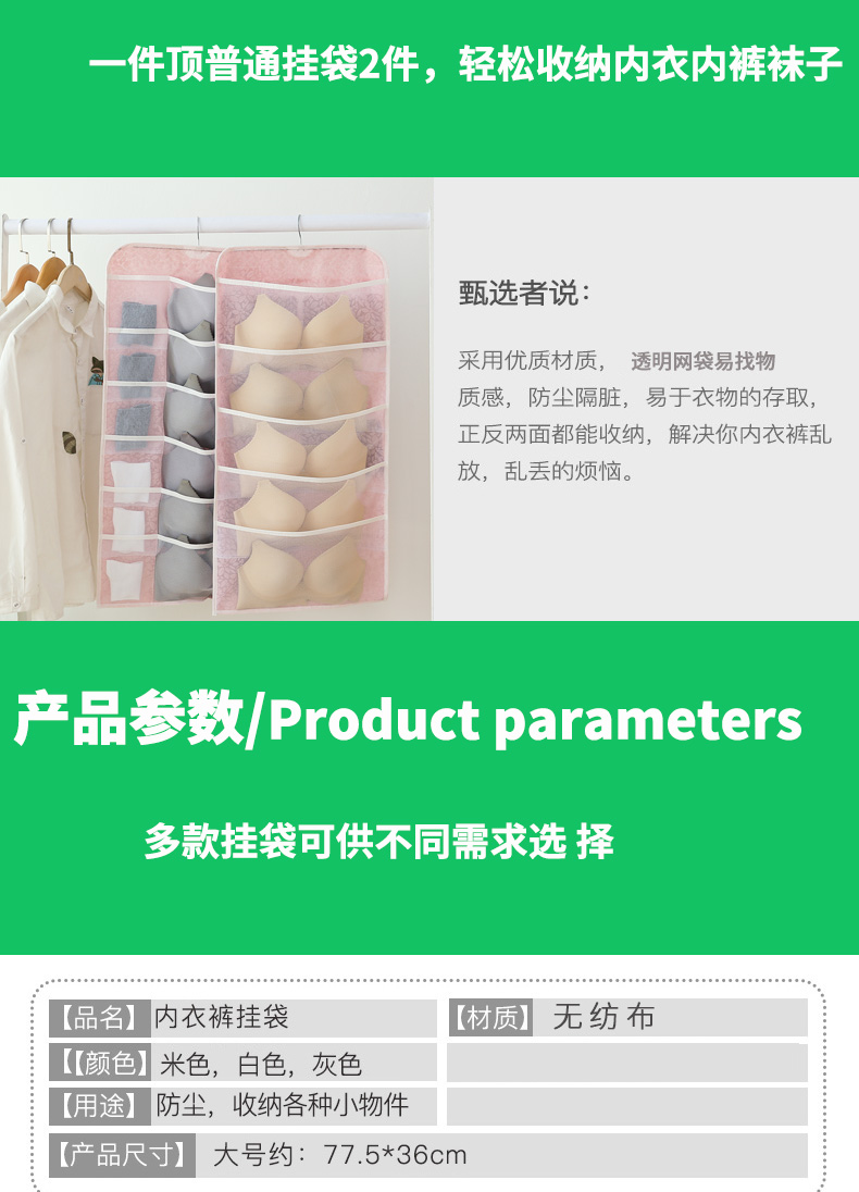Двусторонное нижнее белье, система хранения, подвесной органайзер, колготки, носки, сумка для хранения из нетканого материала