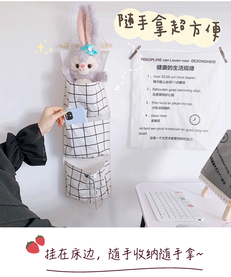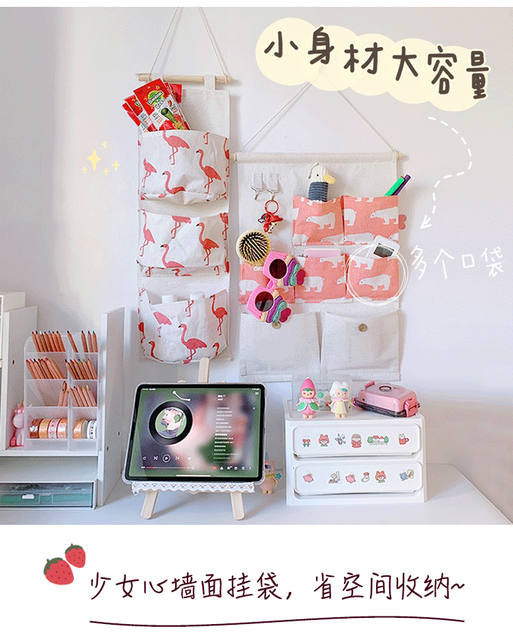 Сумка для хранения на стене, милая девчонка ткань, висящая студенческая дверь за шкаф