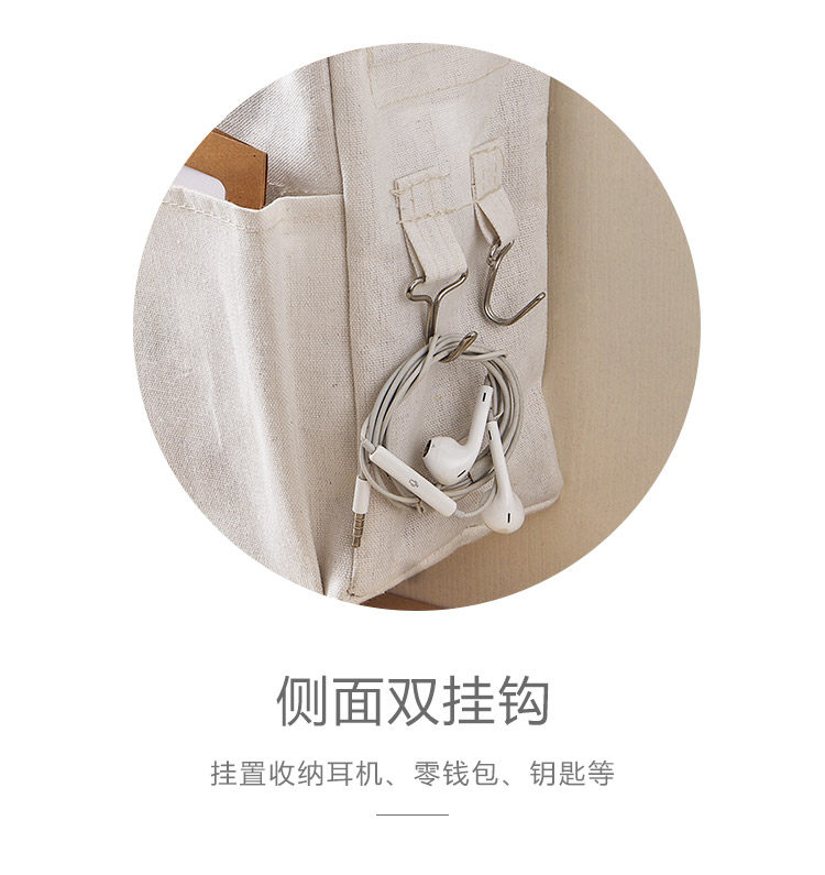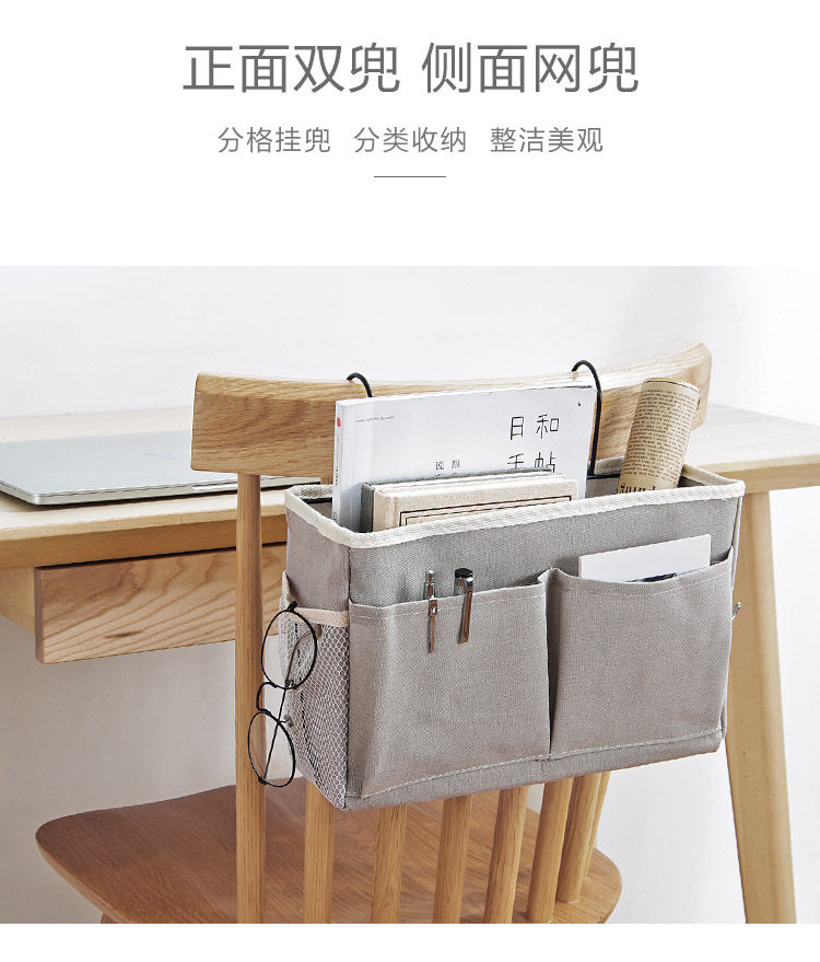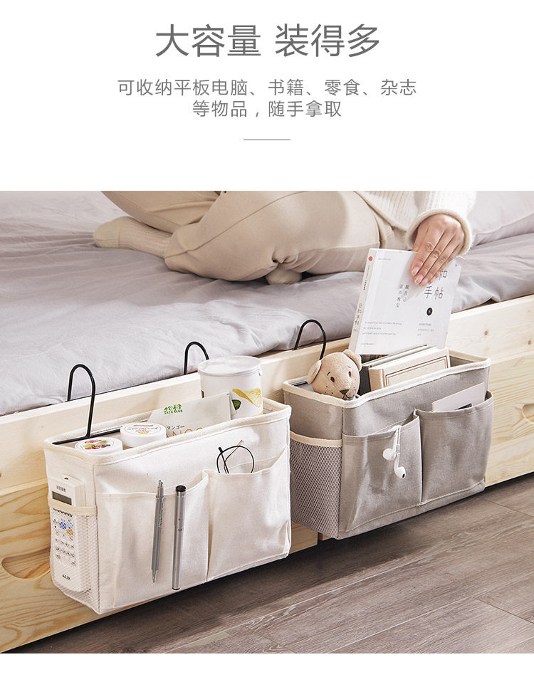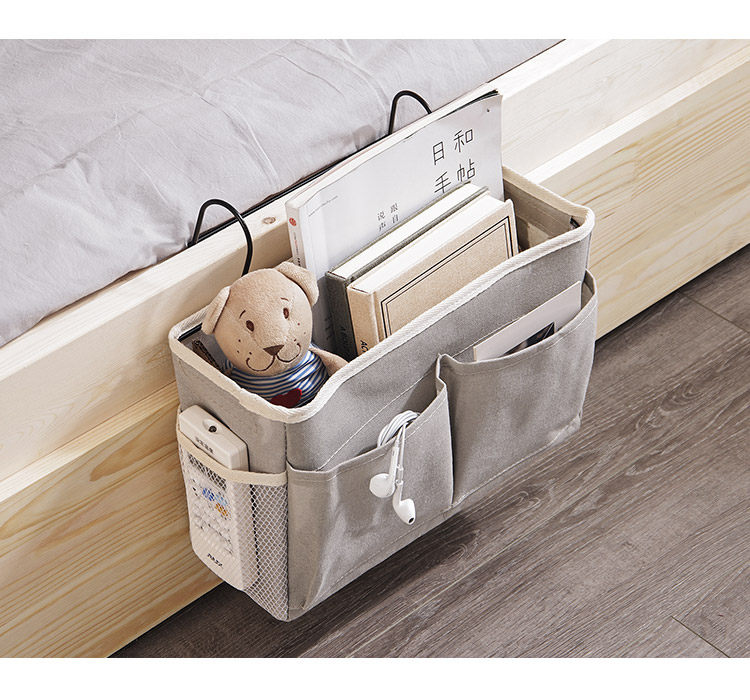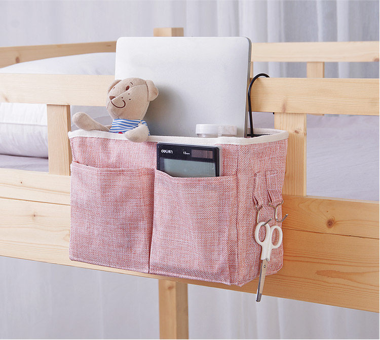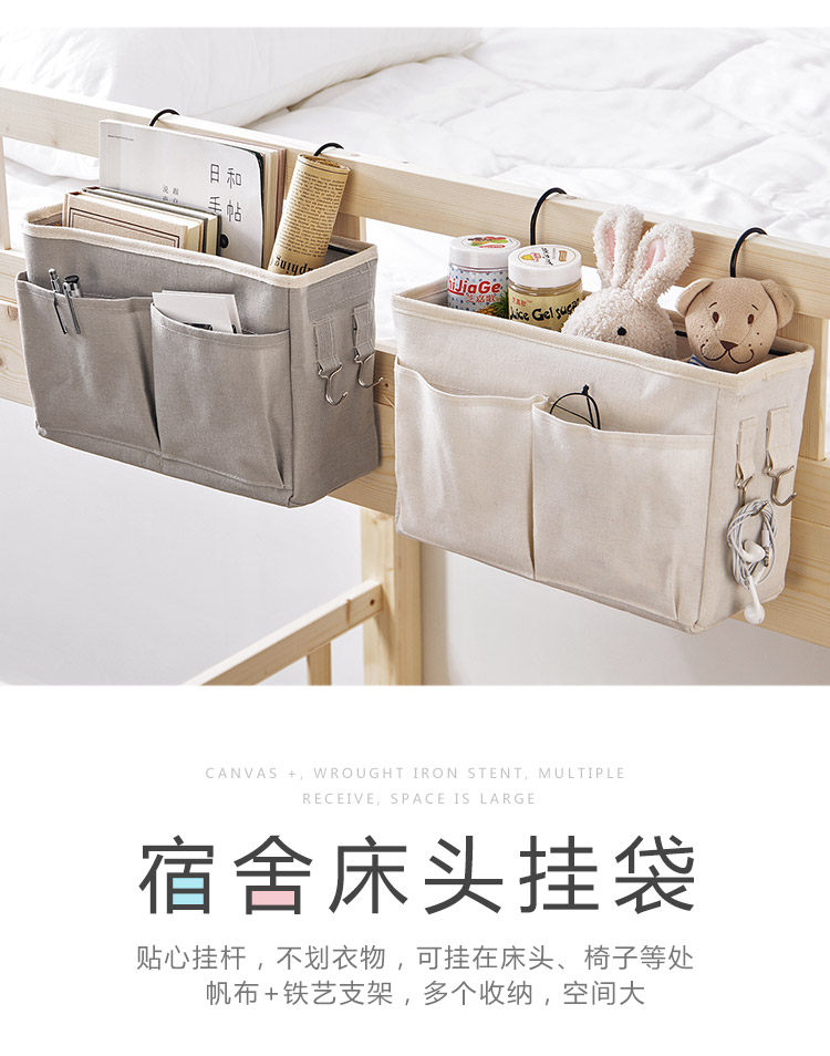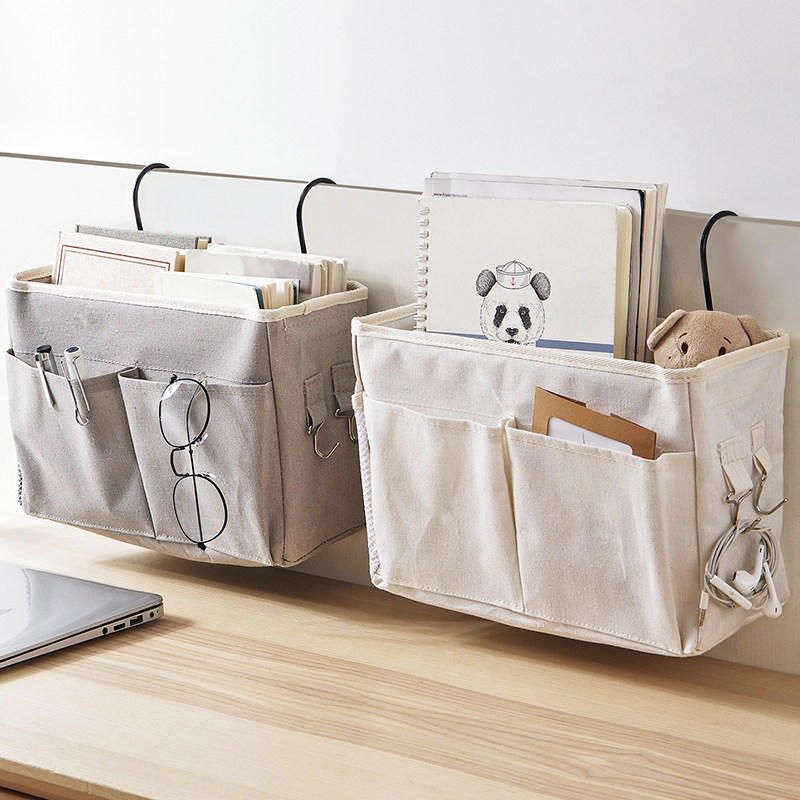 Справочный стол для хранения артефакта общежития на ремешках для хранения, связанном с подвесной корзиной для хранения на боковой стороне кровати