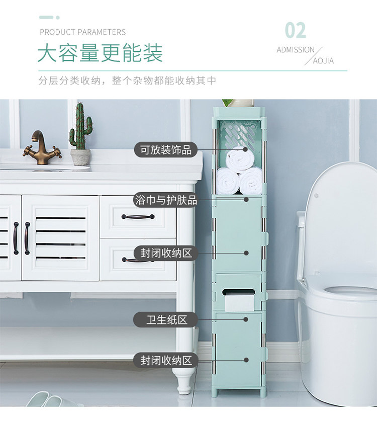 Шкаф для хранения скольжения Slim Gap 20 см шкаф в пластиковую ванную комнату домашний ультра -снятый шкаф для хранения