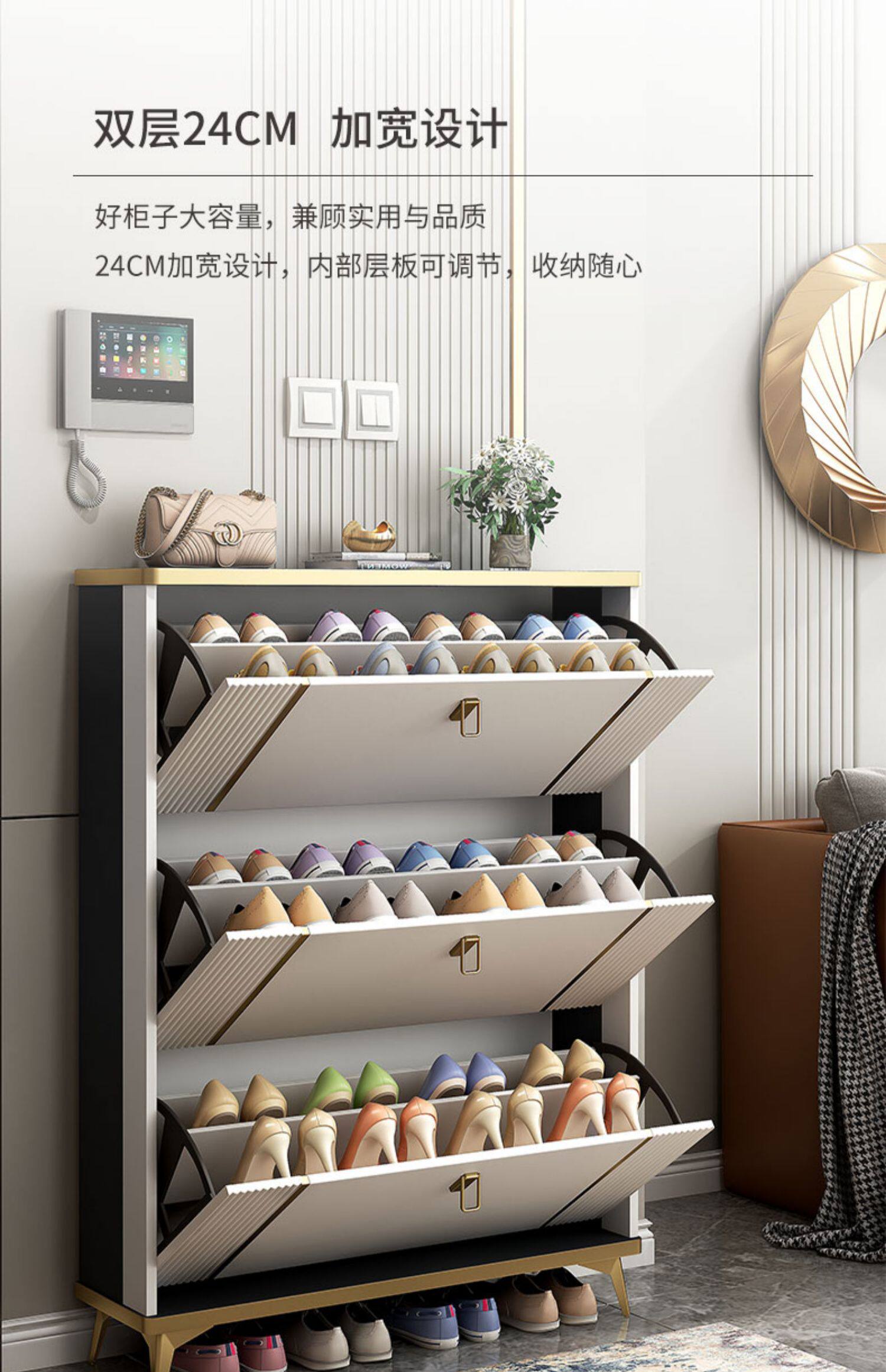 Легкий роскошный шкаф для шкафу для обувного шкафа домохозяйства Ультра -тонкий шкаф для домашнего крыльца Большая мощность многослойная узкая маленькая стойка для обуви квартир