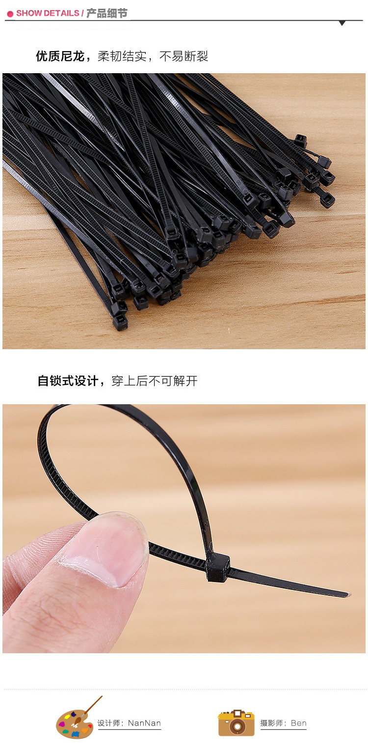 Нейлоновые мощные пластиковые черные кабельные стяжки, фиксаторы в комплекте