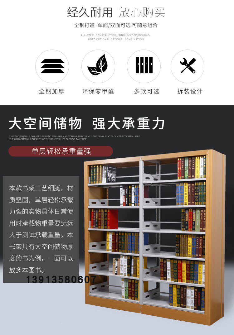 Стальная библиотека книжных полков однооборотная двойная деревянная библиотека