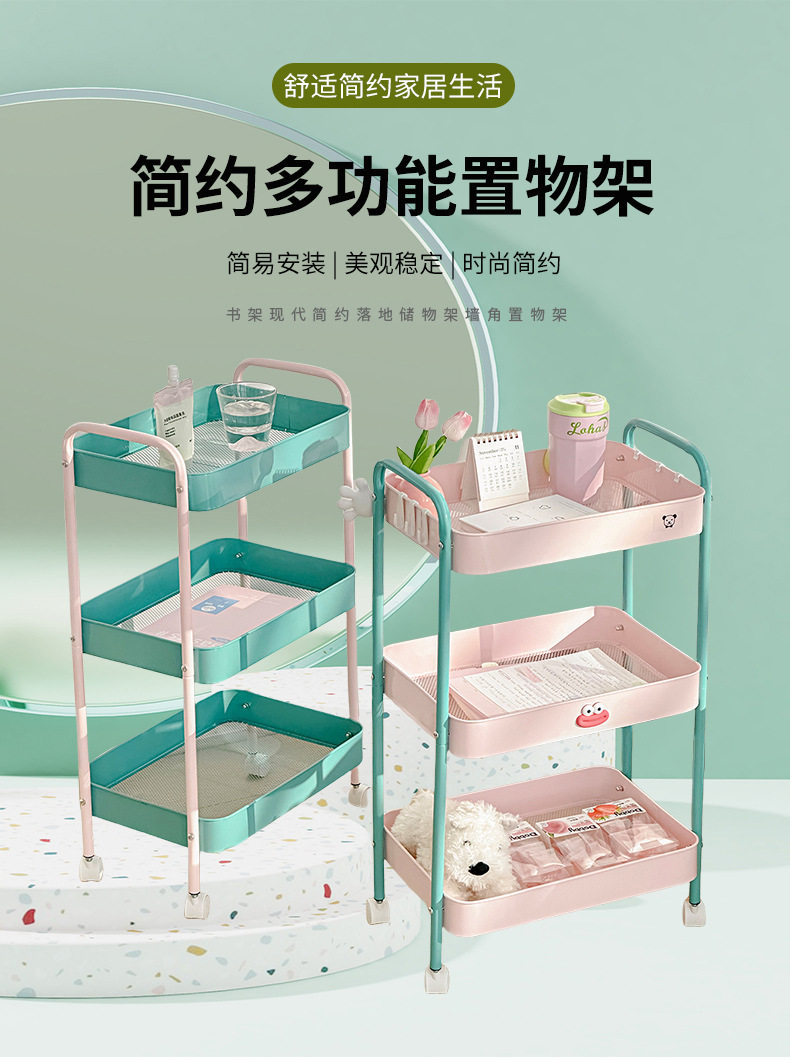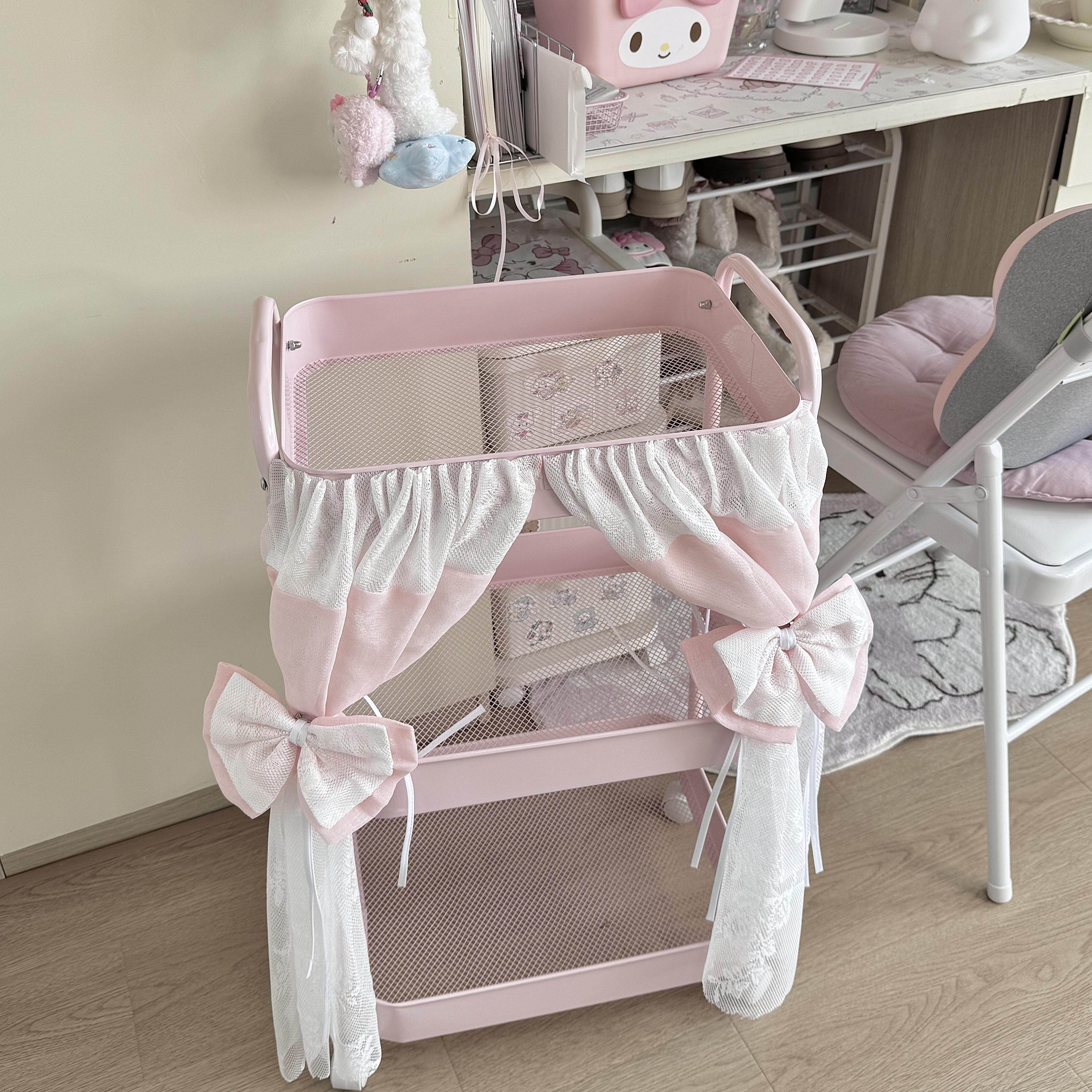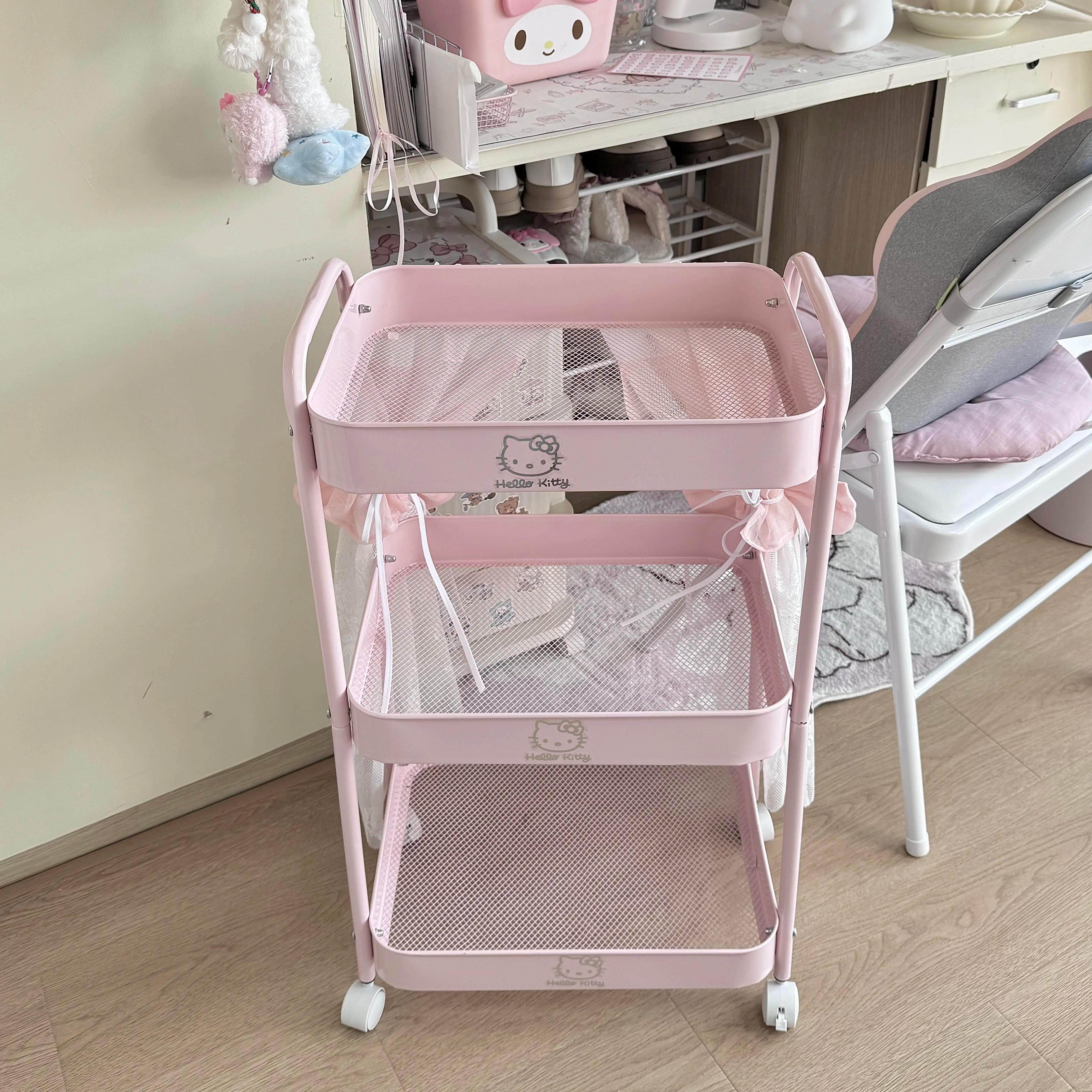 Мультяшная розовая тележка, многослойная система хранения для спальни, корзина, котенок