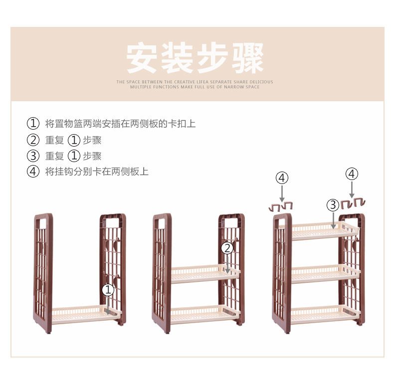 Кухонная полка, ванная комната в ванной комнате пластиковая корзина для хранения.