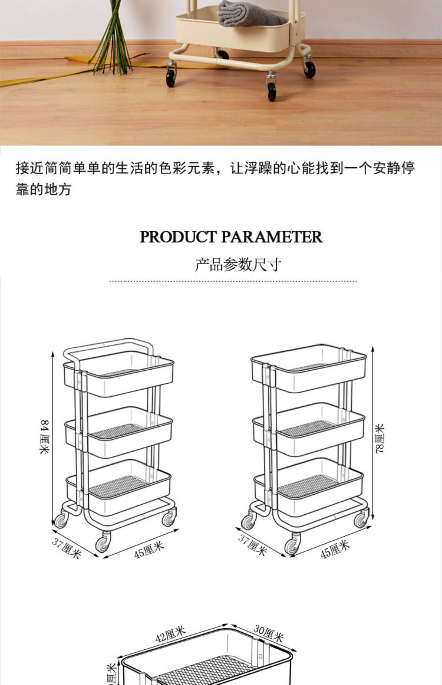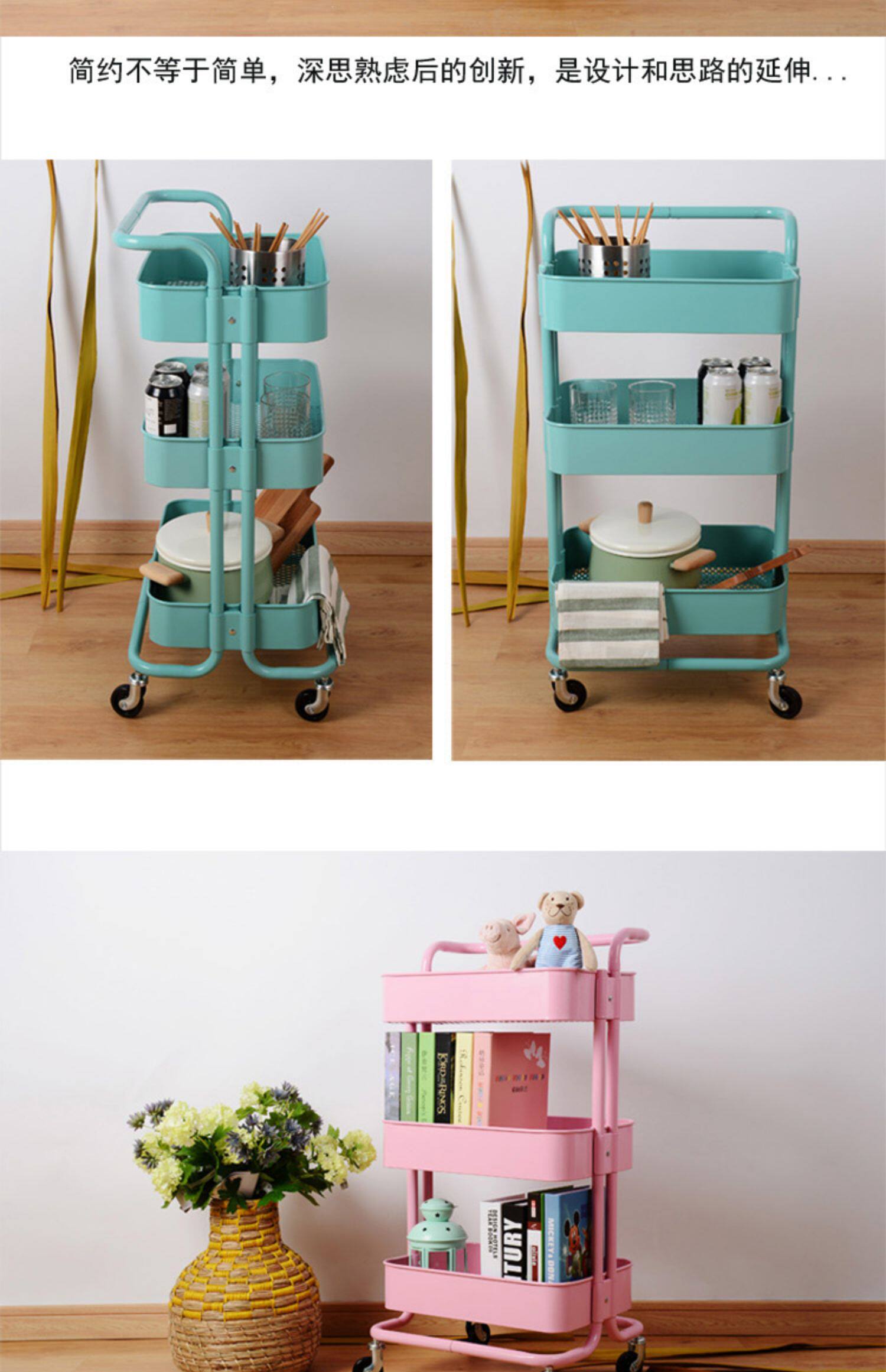 Установите стойку, чтобы переместить колесную стойку для хранения кухни, небольшая тележка, гостиная для хранения ручной тележки