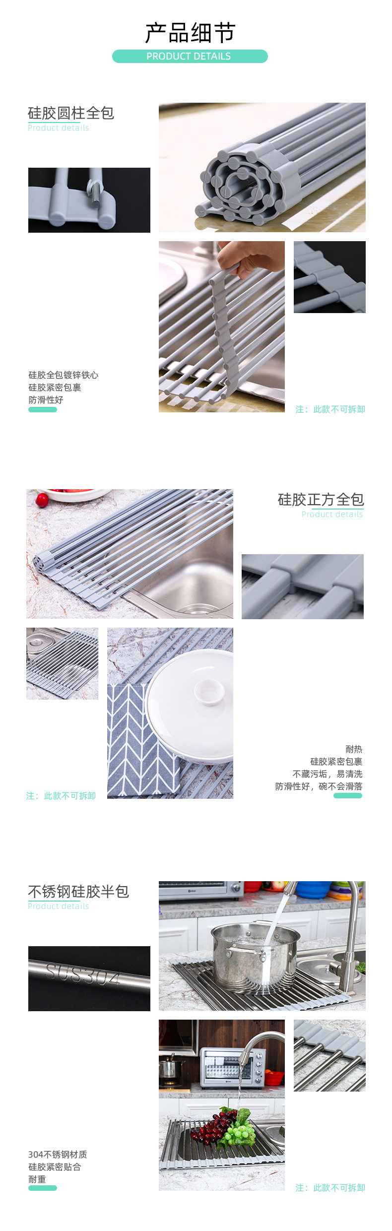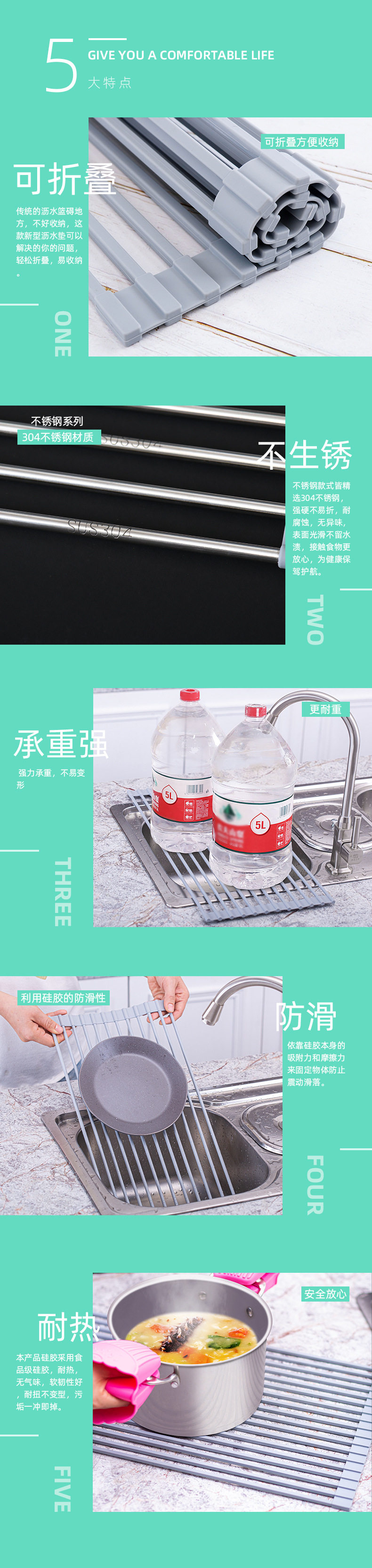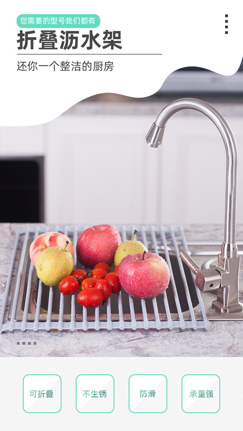 Складная фильтрация воды высококачественных стальных полос и силикона!Этот продукт изготовлен из высококачественных стальных стержней, импортируемых из силиконовых мешков, а гигиена чистая.Пищевая пищевая силикон, который может противостоять высокой температуре, а функция против SLIP силикона может лучше предотвратить предметы над скользящими предметами.Продукт может быть размещен над кухонной раковиной, а вымытые овощи и фрукты или посуда расположены сверху, чтобы слить воду и капли воды.Этот продукт может быть скорректирован произвольно и просты в использовании.Когда он не используется, его также можно свернуть, чтобы сохранить пространство.