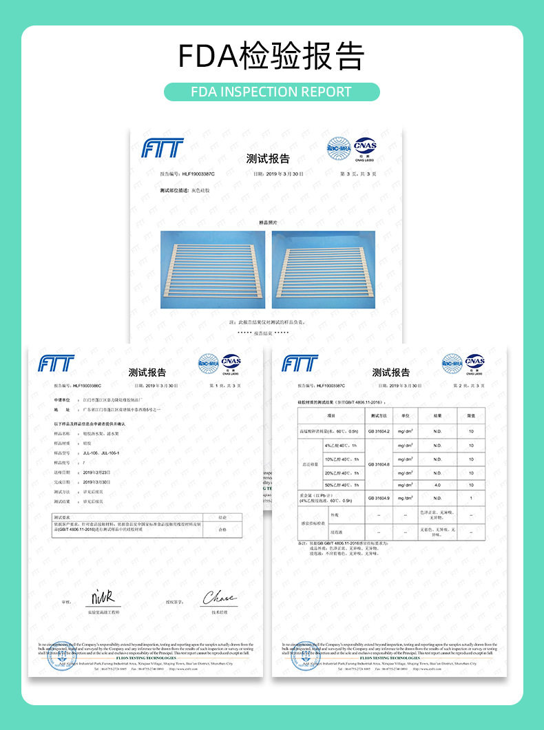 Отчет об тесте на продукты питания продукта (отчет о тестировании FDA и национальный отчет о тестировании)