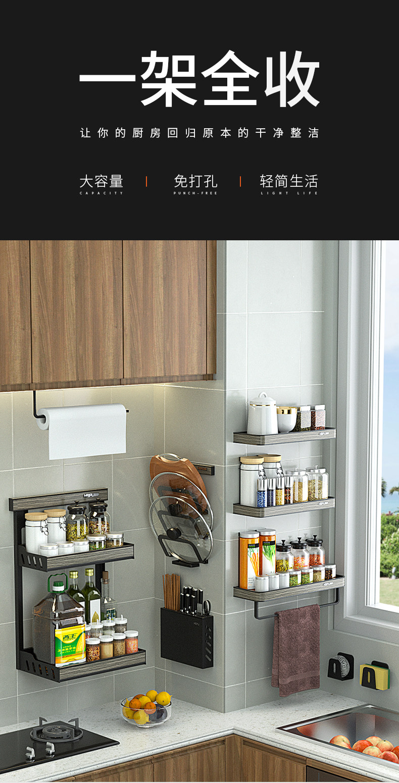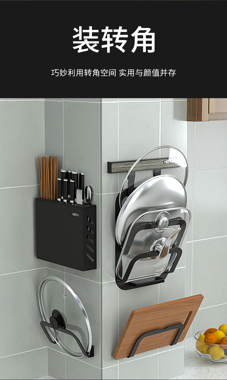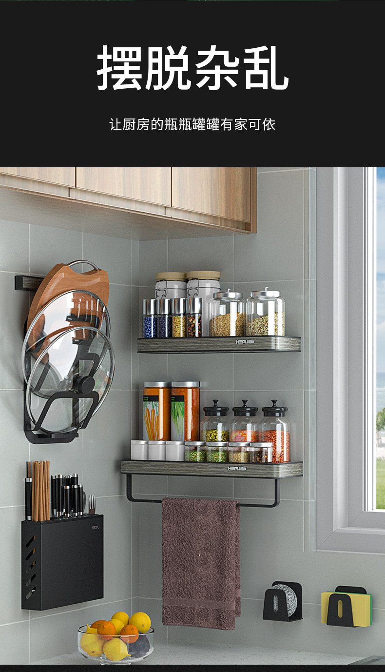 Кухонная стойка приправа приправа на стенах на стенах висящих нож на полке для ножа.