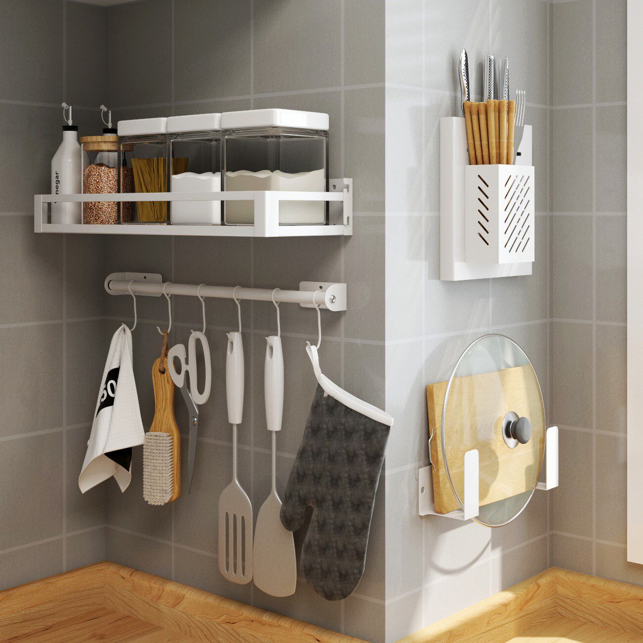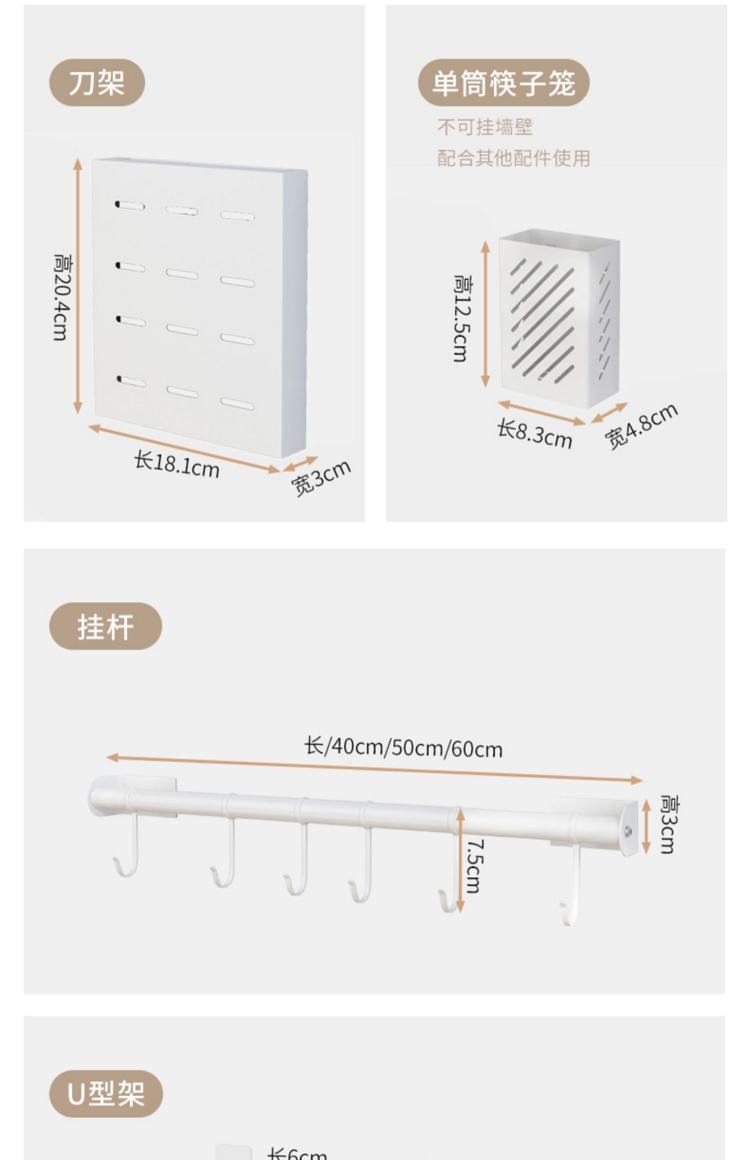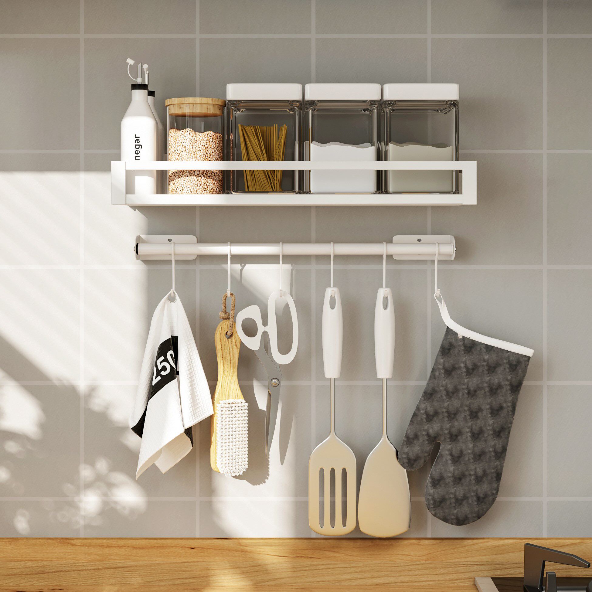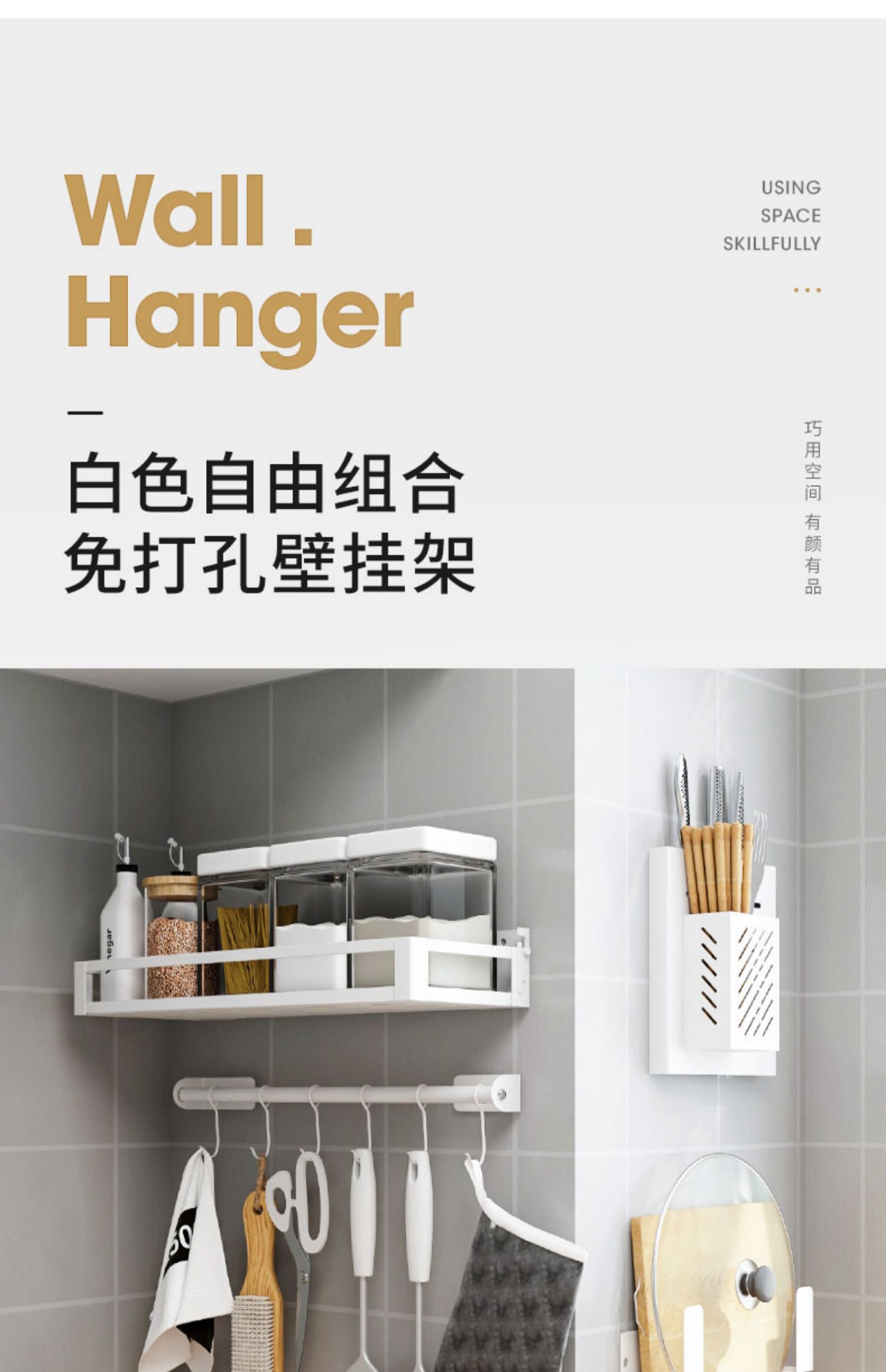Кухонный укрытие без отверстия стена -стержень висящие стержни на стене стойки для ножа Juvenue Box Console Хранение подвесная полка белая