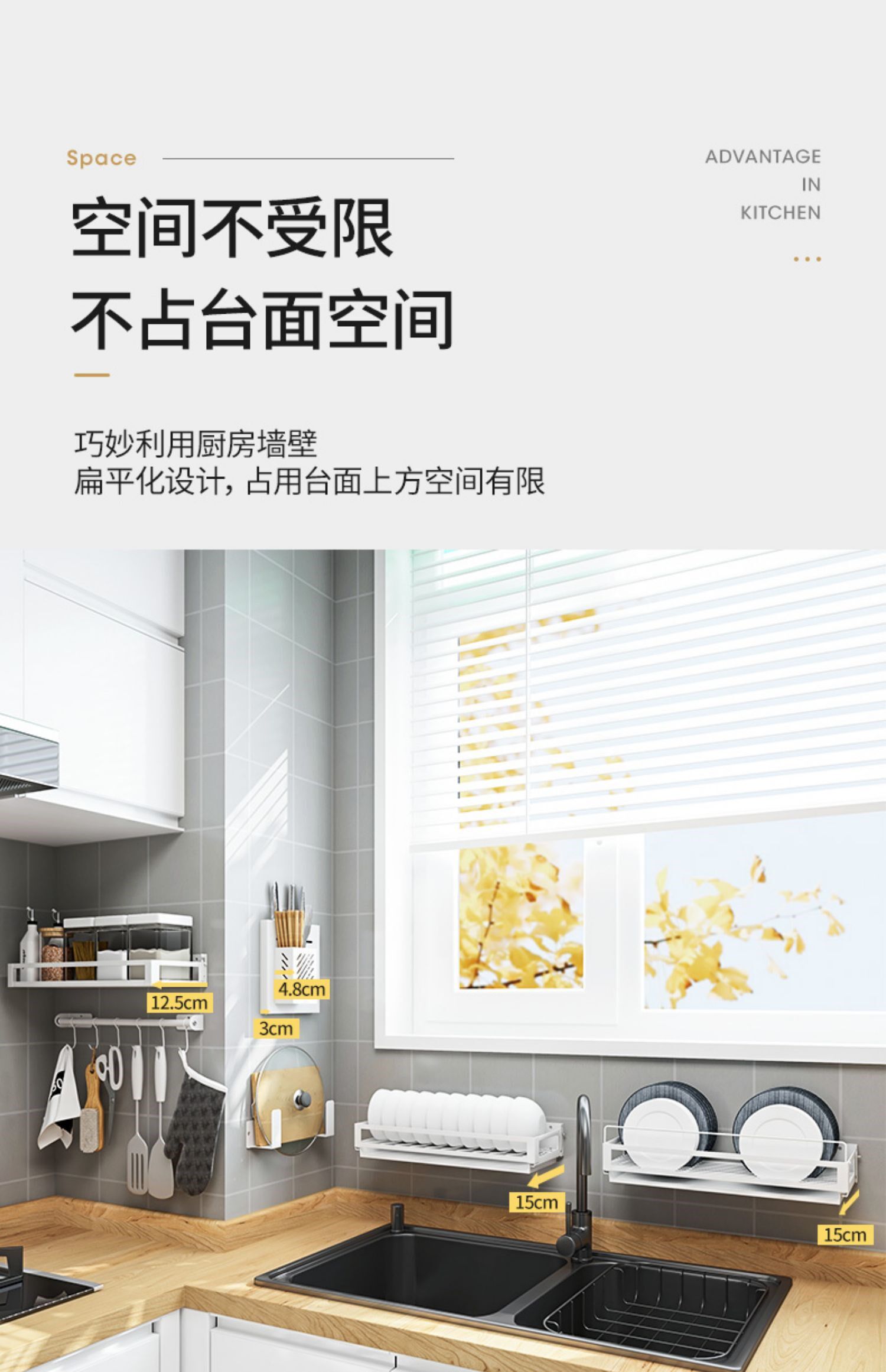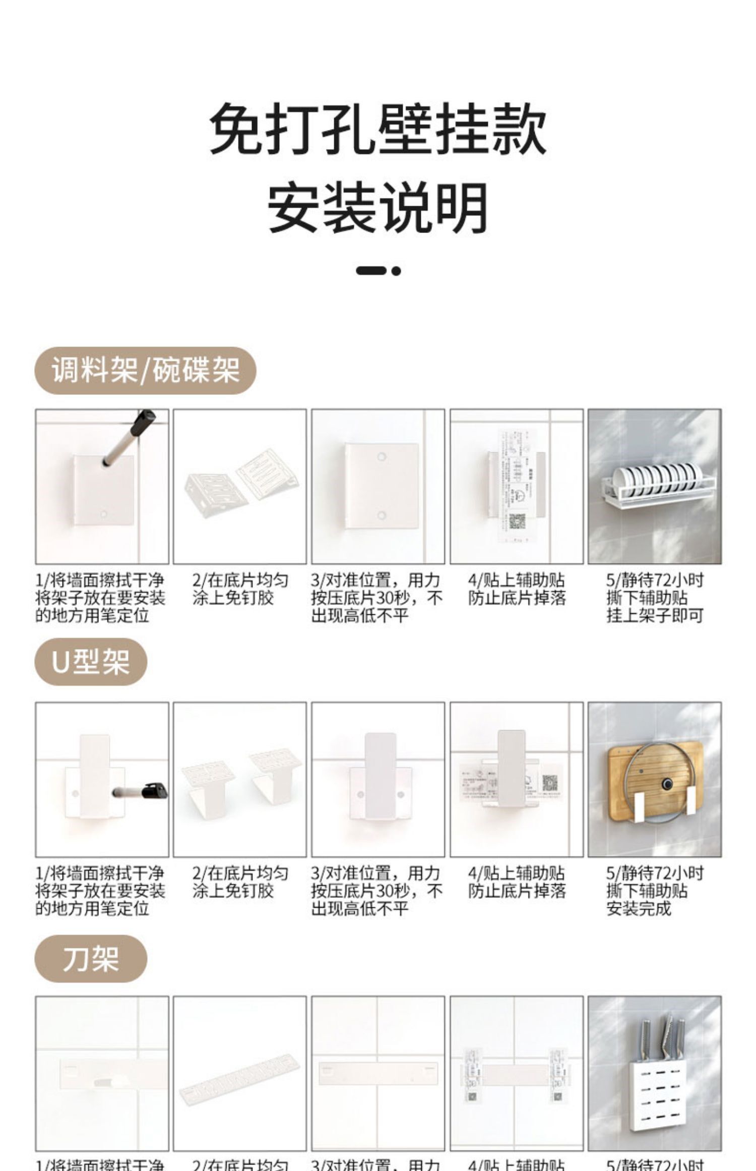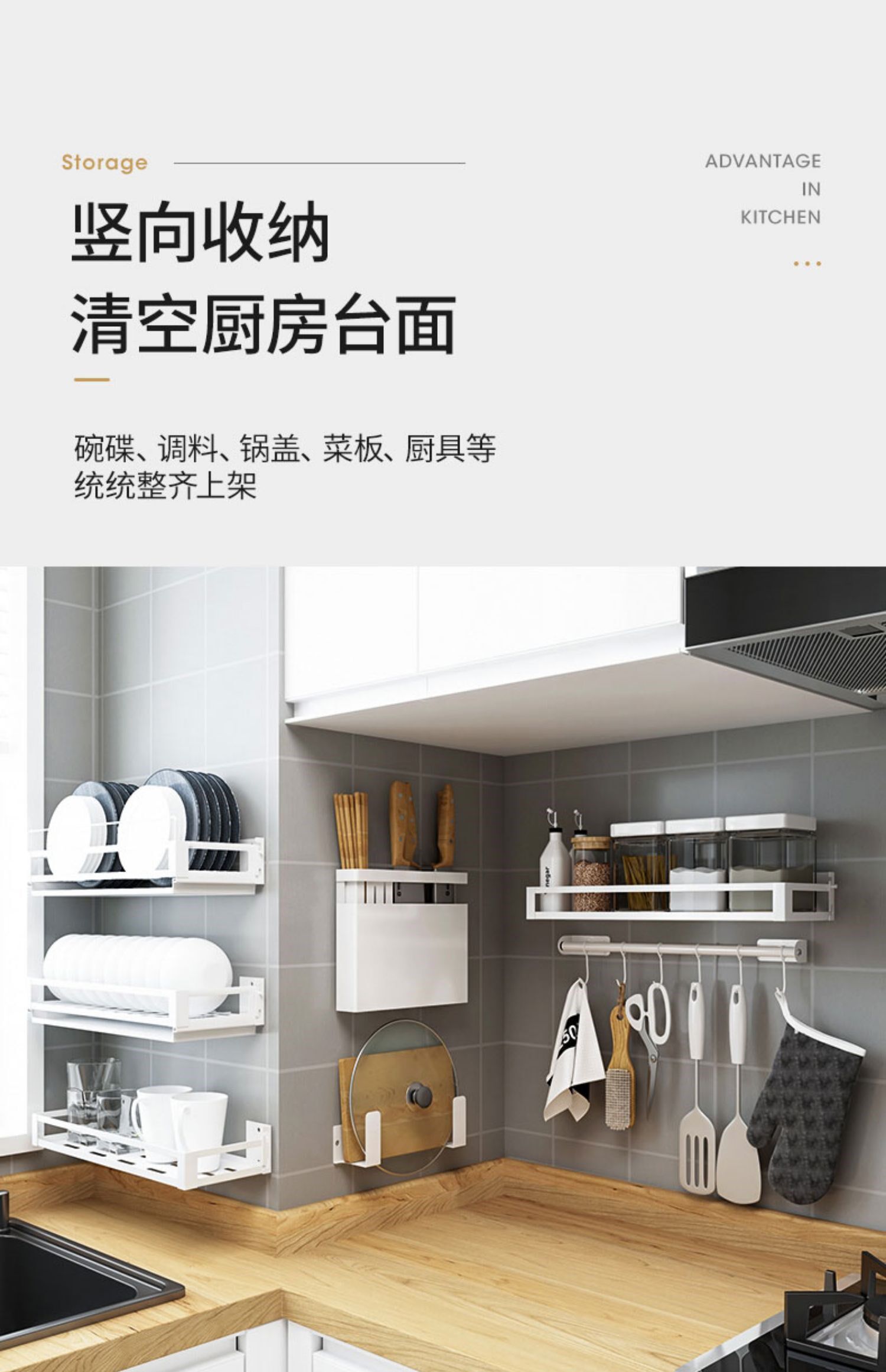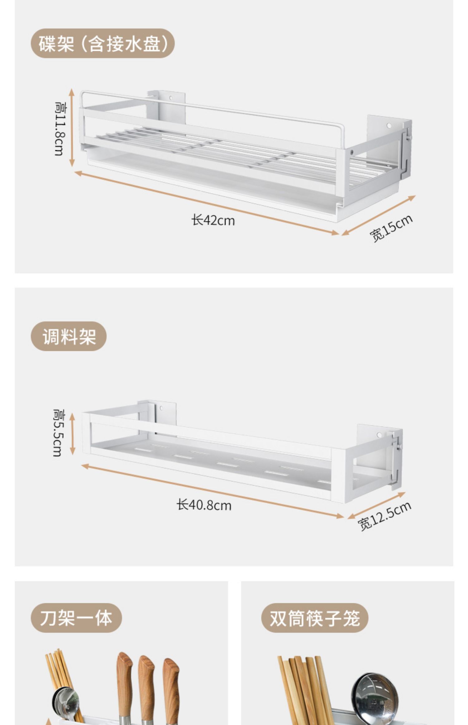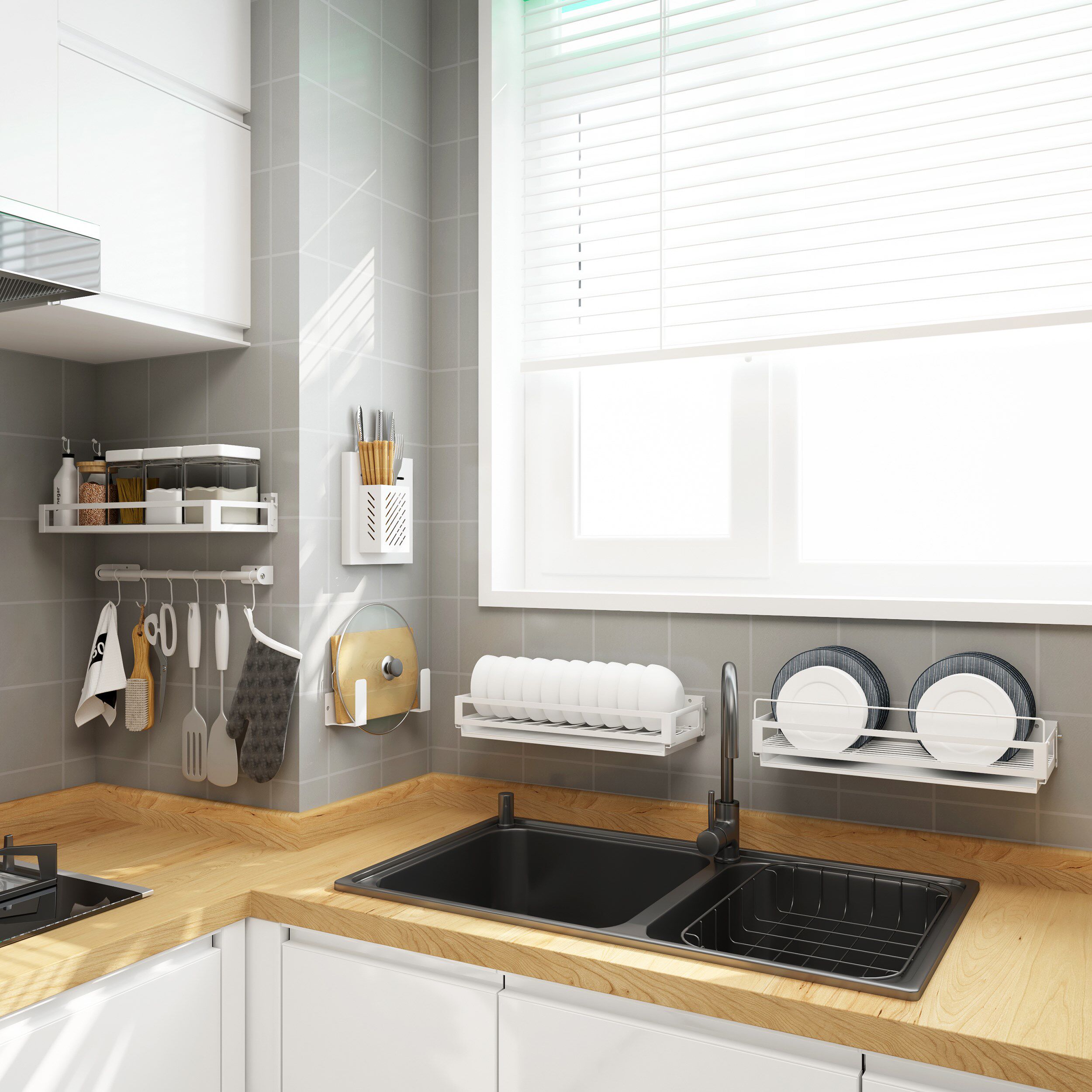 Кухонный укрытие без отверстия стена -стержень висящие стержни на стене стойки для ножа Juvenue Box Console Хранение подвесная полка белая