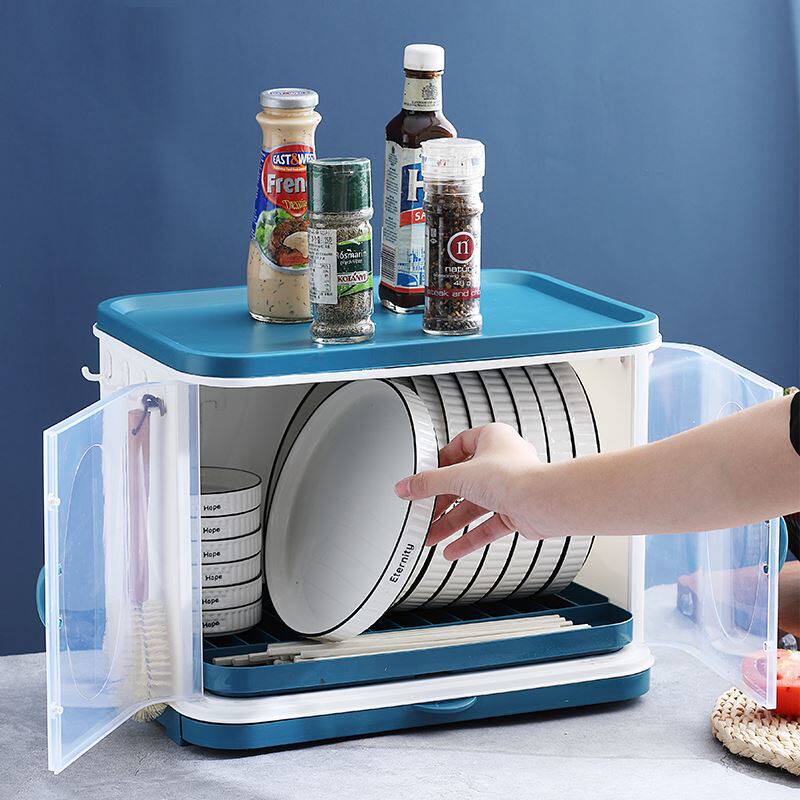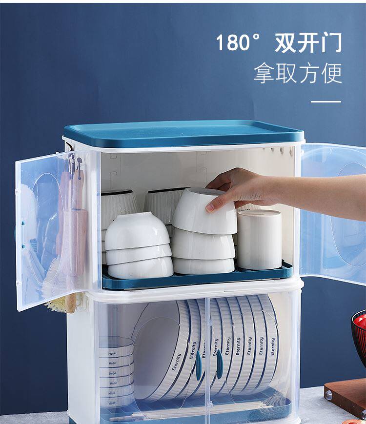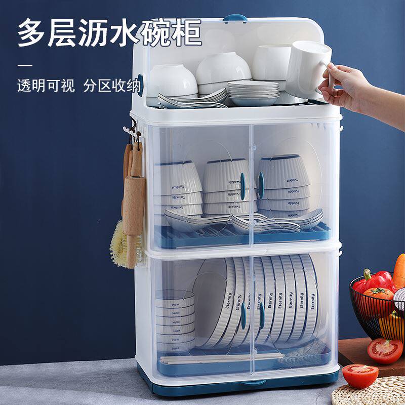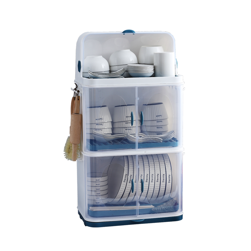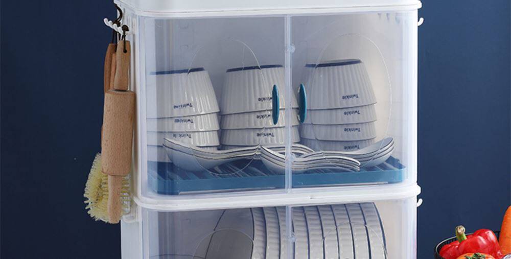 Коробка для хранения посуды на кухонной миске с двумя слоями стеклянных стойков Положите посуду, блюдо, блюдо, блюдо, блюдо, настольное шкаф