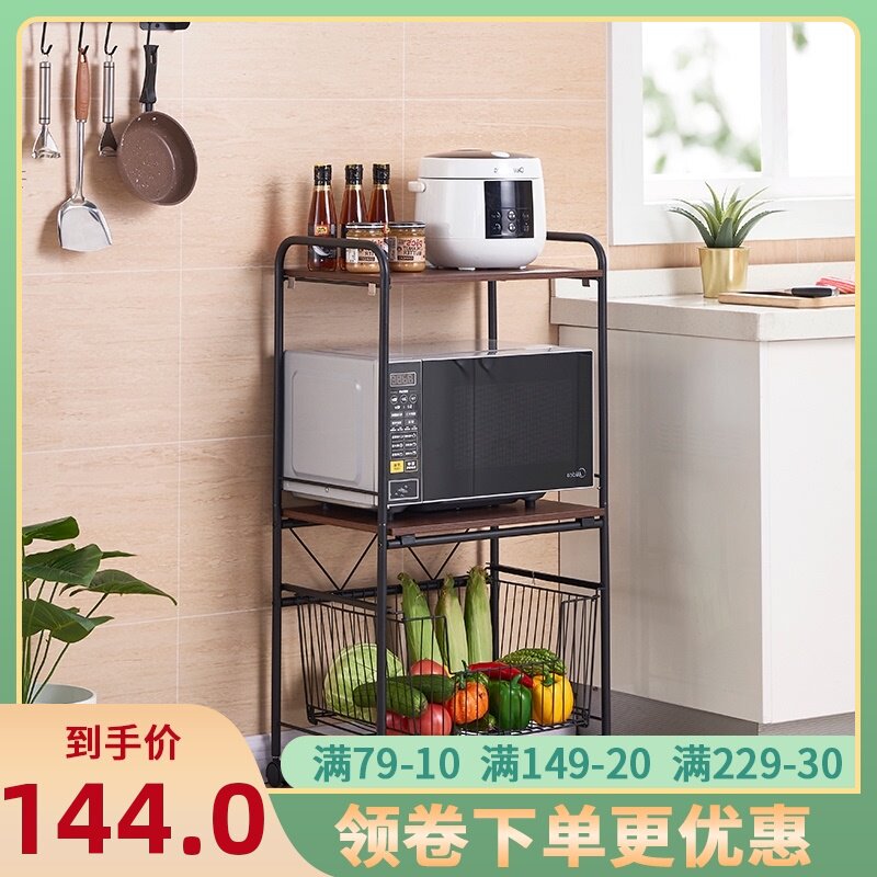 Микроволновая печь может перемещать черную трехворскую печь, помещая кухонный дом для хранения небольших домов на кухне.