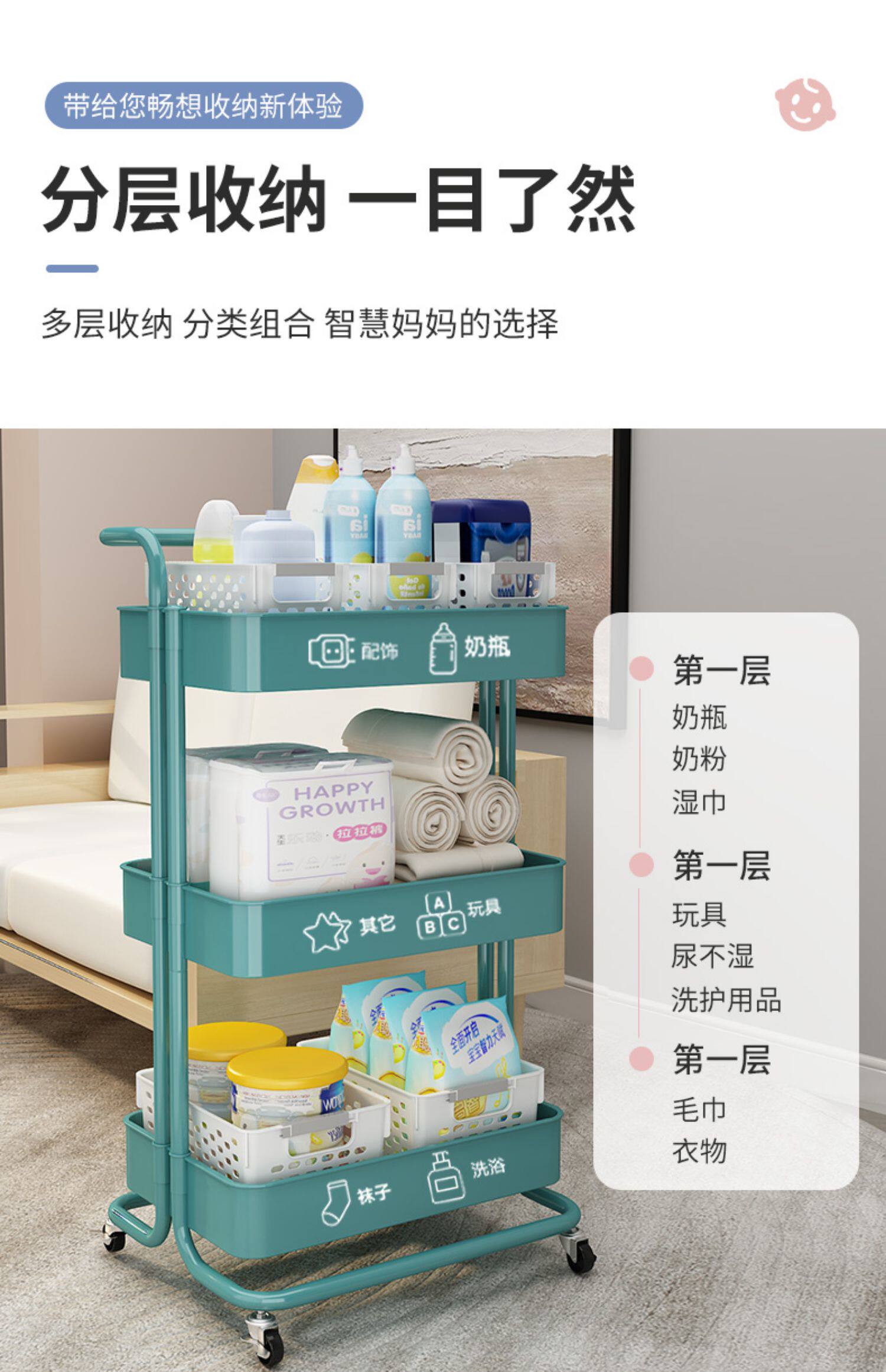 Детская многослойная коляска для новорожденных, коробочка для хранения для спальни для кровати, система хранения