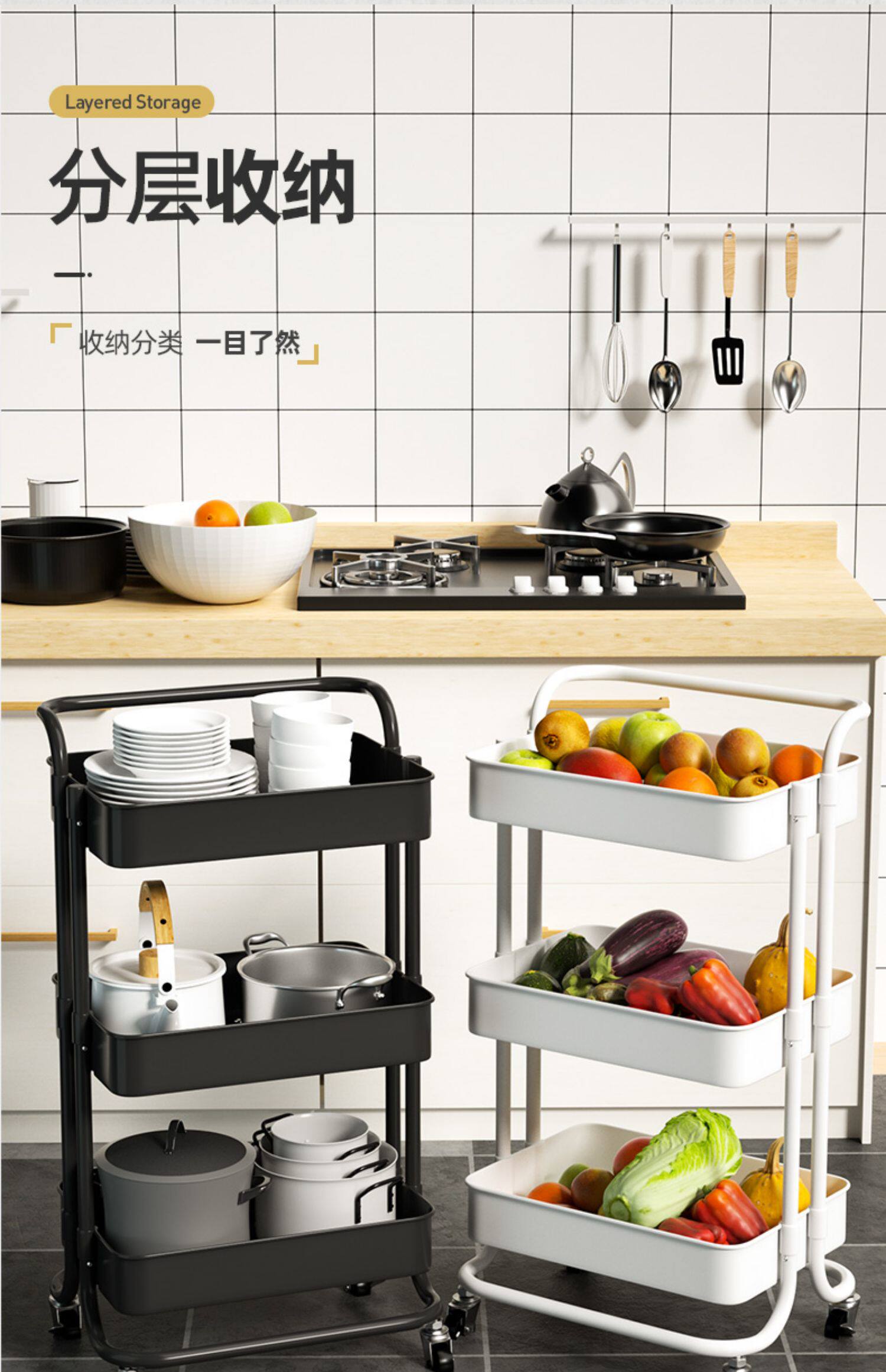 - 3 -Layer Classic Style [Белый] Нажатие руки+универсальное колесо+крюк
