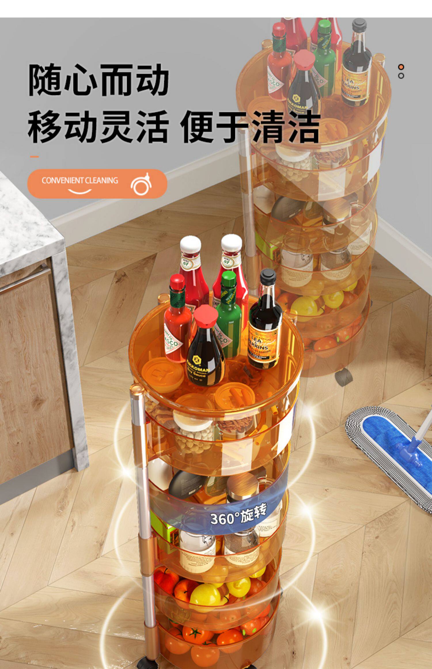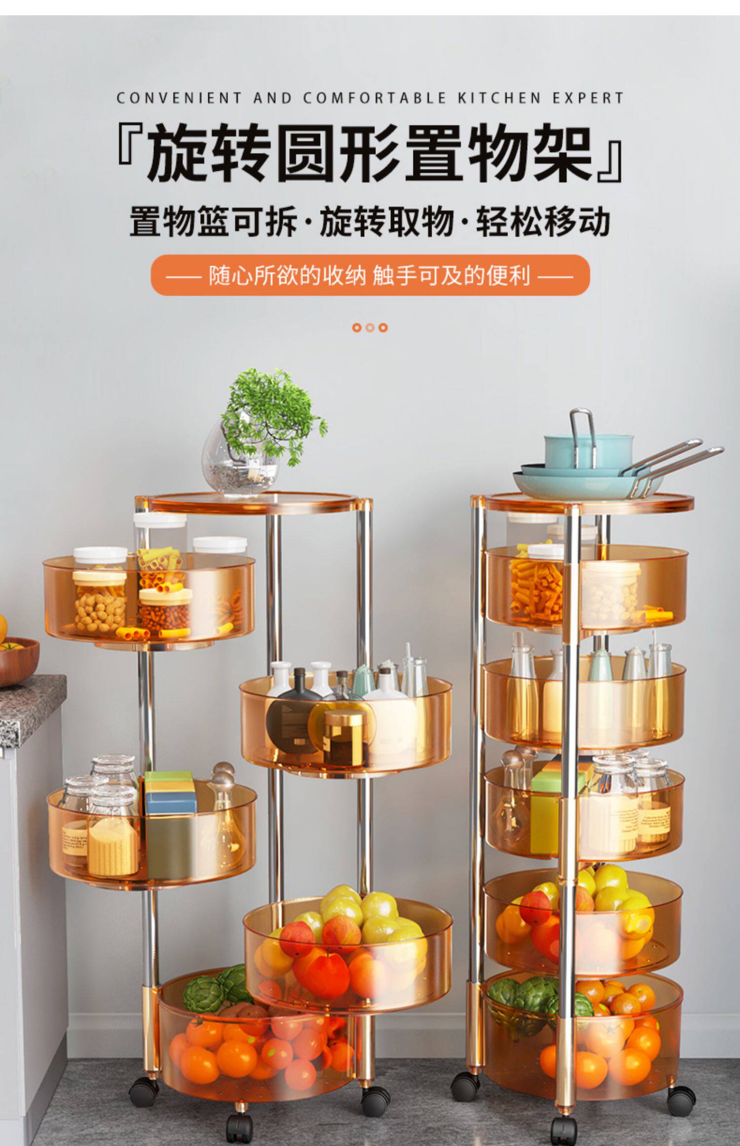 Крутящаяся многослойная корзина для фруктов и овощей для домашнего использования, тележка, система хранения